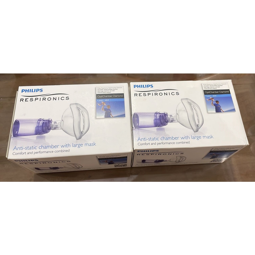 Philips Respironics OptiChamber Diamond Anti-Static Chamber With Large Mask - Comfort and Performance Combined with Large Mask for use with metered dose inhalers ORI 100% SEGEL DISTRIBUTE FROM SINGAPORE