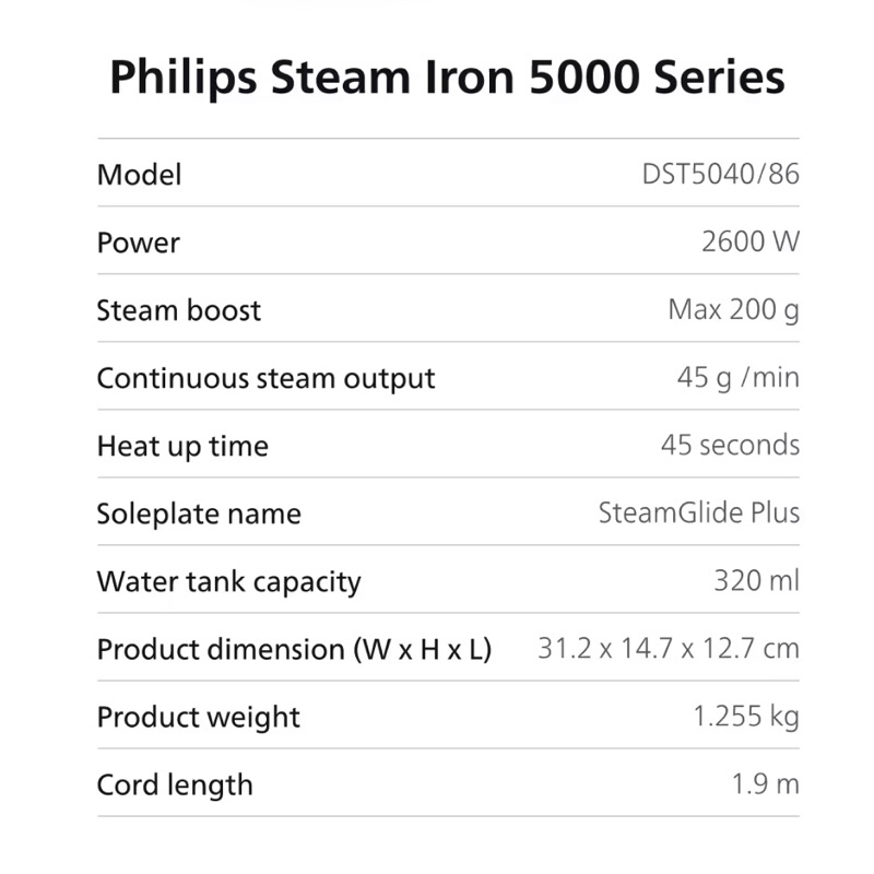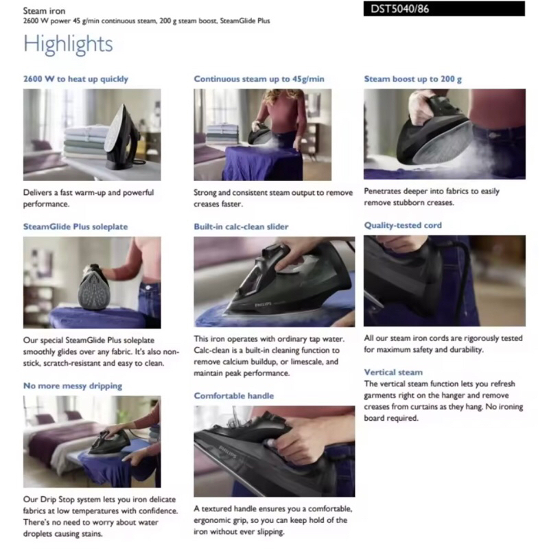 Philips Steam Iron 5000 Series DST5040/86 setrika uap Philips
