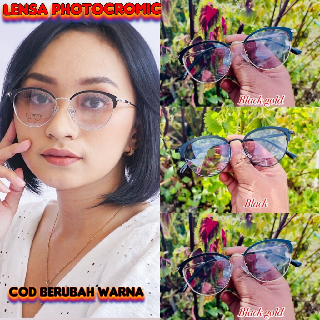 Photocromic Berubah Warna Antiradiasi Frame Titanium Unisex Korean Vintage Free Box Dan Lap