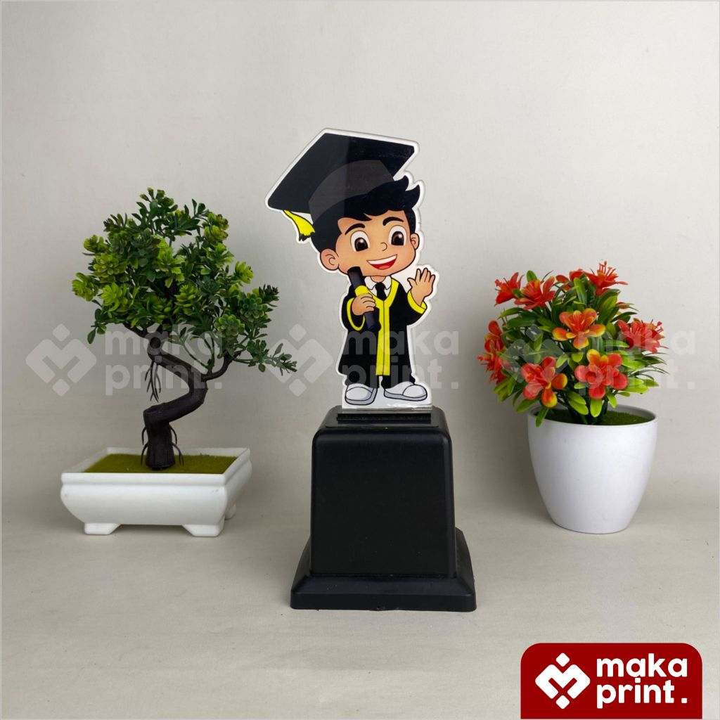 Piala Akrilik Wisuda (Hijab Hitam) - Piala Wisuda Karakter Almamater Hitam Kuning - Piala Kuliah - Piala Kelulusan - Kado Wisuda - Piala Karakter Boneka