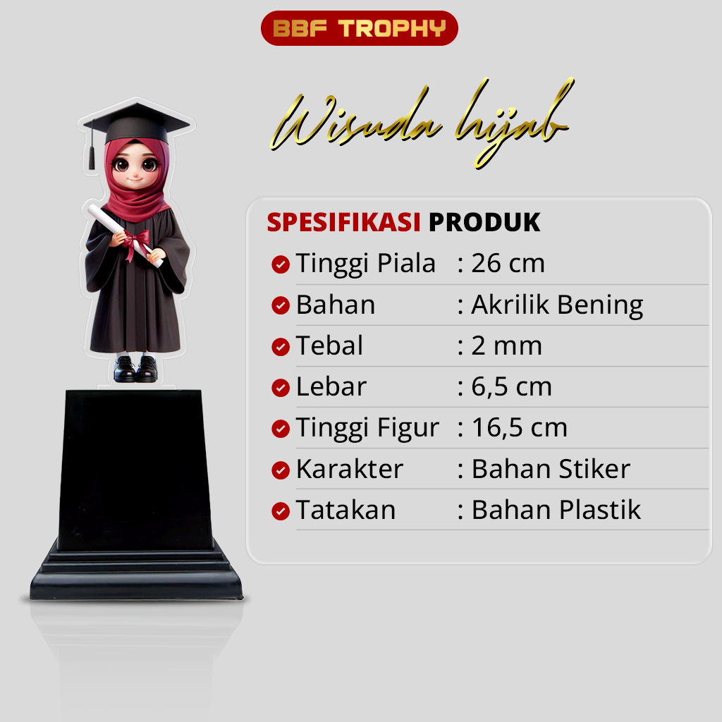 Piala Wisuda Anak Sekolah Tk Paud Sd Plakat Akrilik Kado Hadiah Perempuan | Laki-laki | Hijab