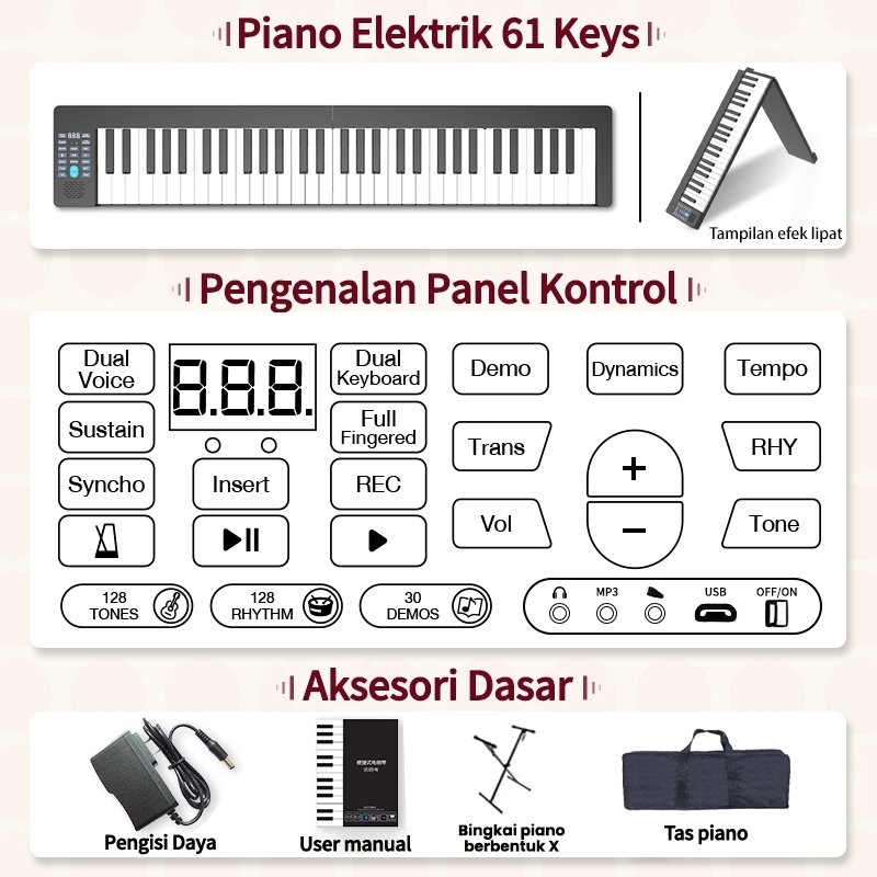 Piano Lipat Elektrik 61 Keys Keyboard Piano Alat Musik Keyboard Siswa Berlatih Piano 61B