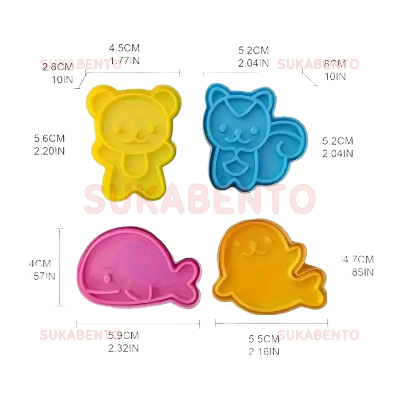 SBT Cetakan Roti Tawar sandwich Bekal Anak Lucu Karakter Tupai Beruang Paus Lumba Bento Rice Mold Set isi 4