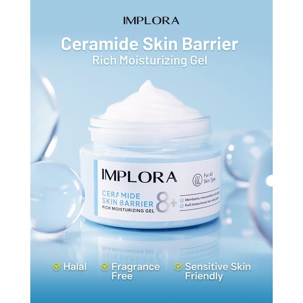 Implora 8+ Ceramide Skin Barrier Rich Moisturizer Gel 30ml | Kulit Ekstra Lembap!