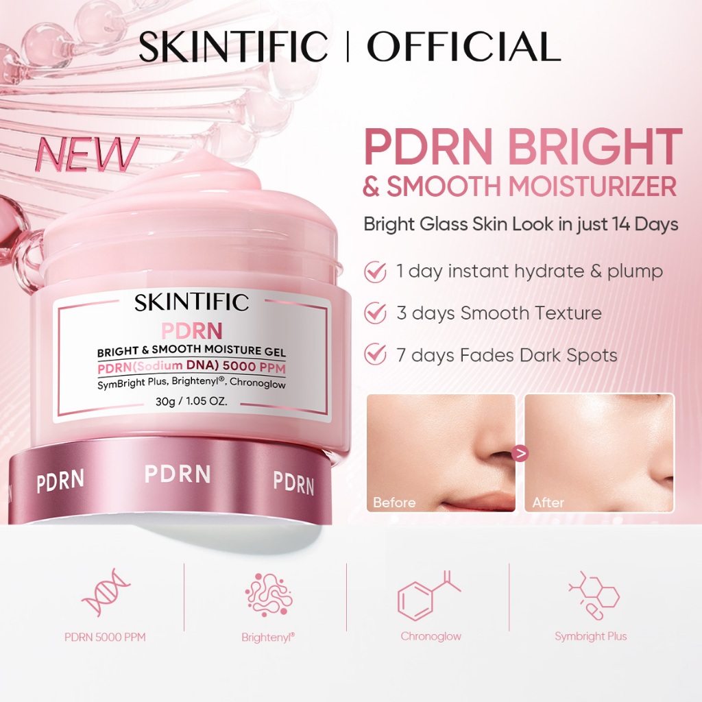 [NEW LAUNCH]SKINTIFIC-PDRN Bright & Smooth Moisturizer – Brightening & Hydrating Cream Wajah untuk Semua Jenis Kulit termasuk Kulit Sensitif – Repair Skin Barrier & Smooth Texture – Glass Skin Day & Night Cream dengan 5000 PPM PDRN untuk Kulit Kusam