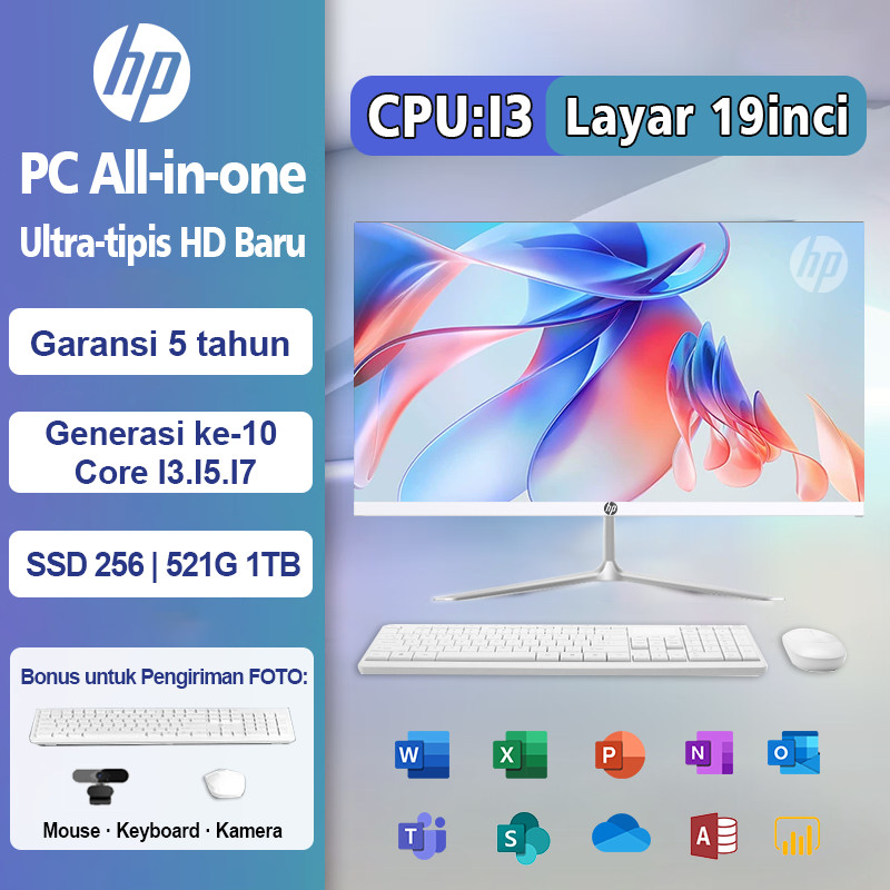 HP Komputer Full PC All-in-One Baru Terbaru HD Super Tipis Intel Core i3/i5/i7 Untuk Rumah, Belajar, Kantor, Gaming dan Hiburan - 19/22/24/27 Inch Curve Gratis Keyboard dan Mouse! . Kemasan karton dan busa Rak Kayu Inklusif.