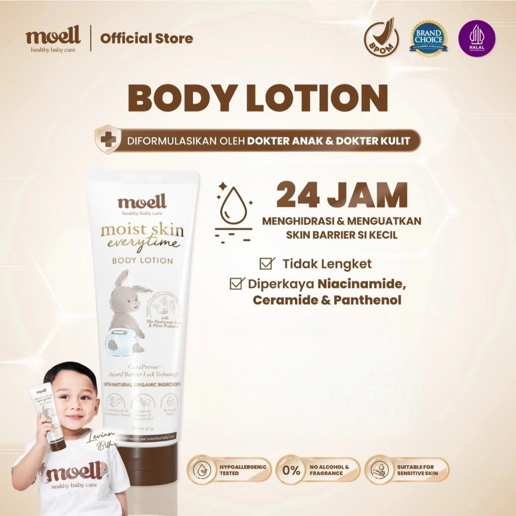 Moell Moist Skin Everytime Body Lotion 185gr - Pelembab Bayi Kulit Kering Dan Ruam