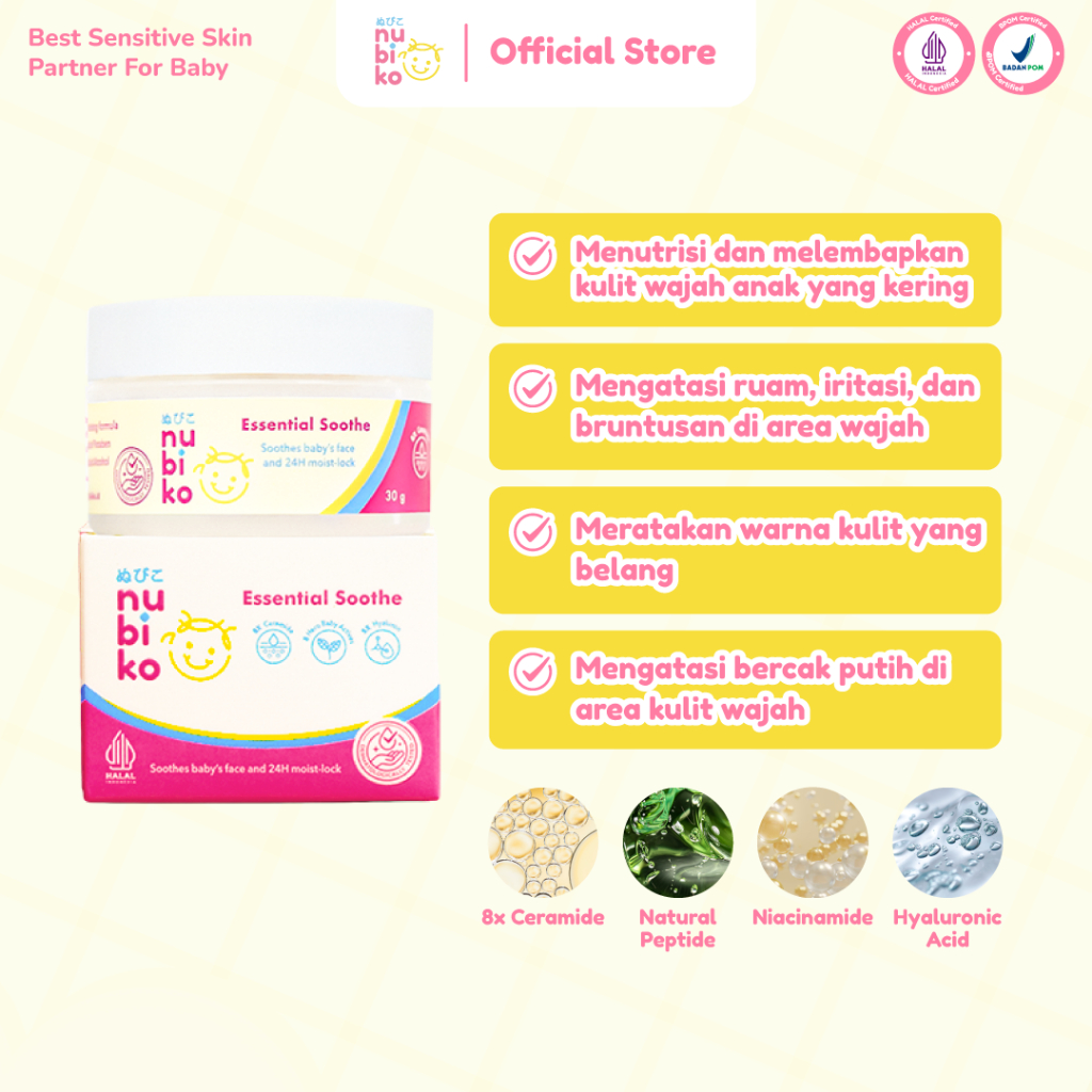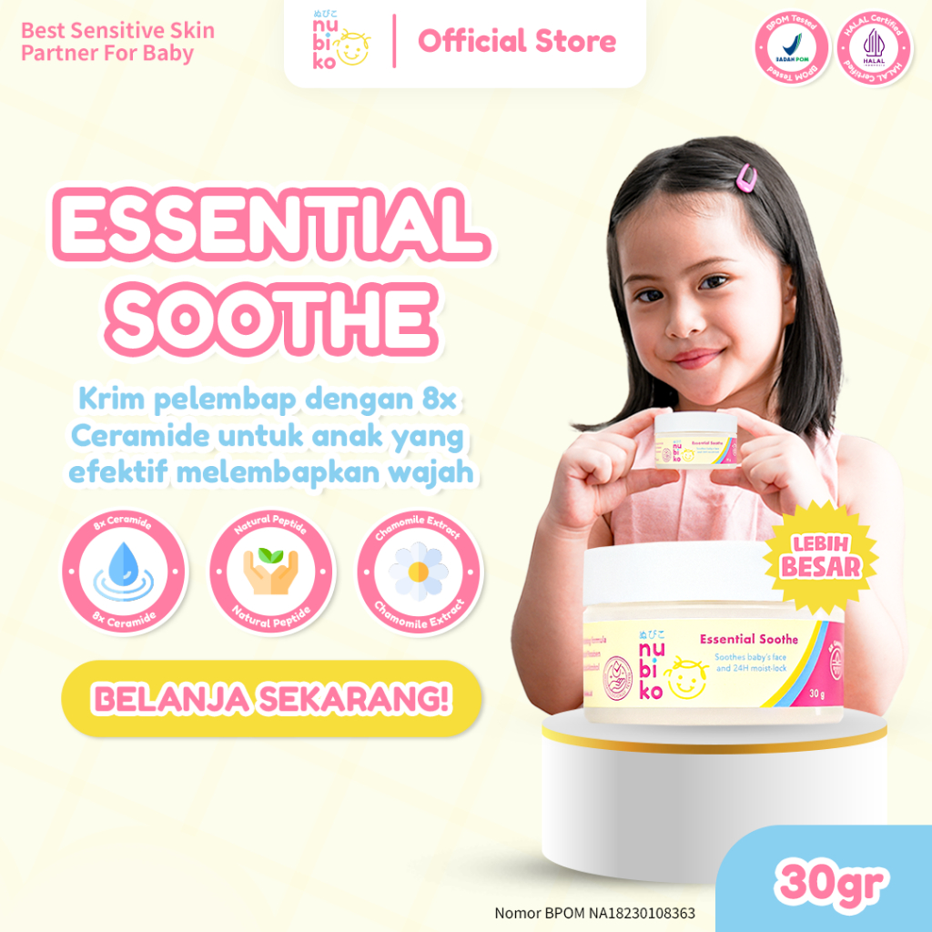 Nubiko Essential Soothe 30gr dengan 8x Ceramide Niacinamide Microbiome Moisturizer Face Cream Anak