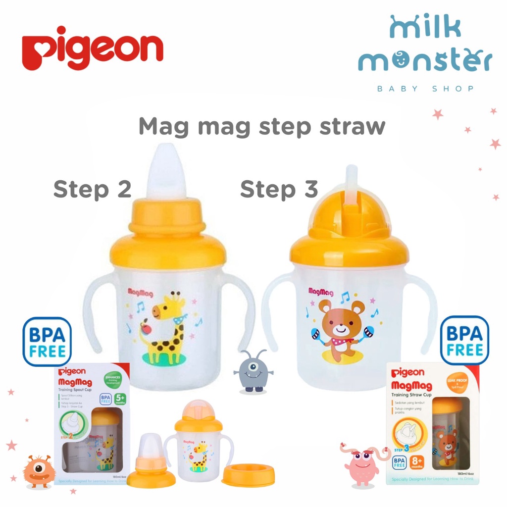 Pigeon Mag Mag Step 2 spout cup dan step 3 Straw cup / Training Cup Bayi
