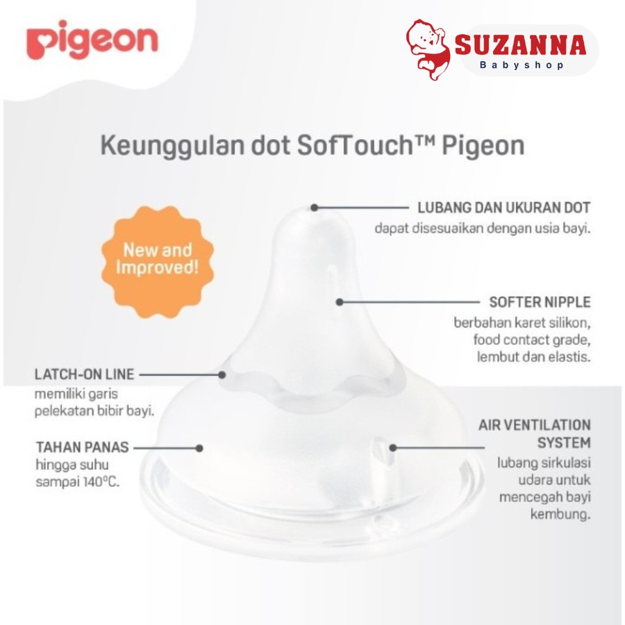 Pigeon Softouch Plus Nipple 2's Box I Dot Bayi / Dot Botol Susu Pigeon Wide Neck