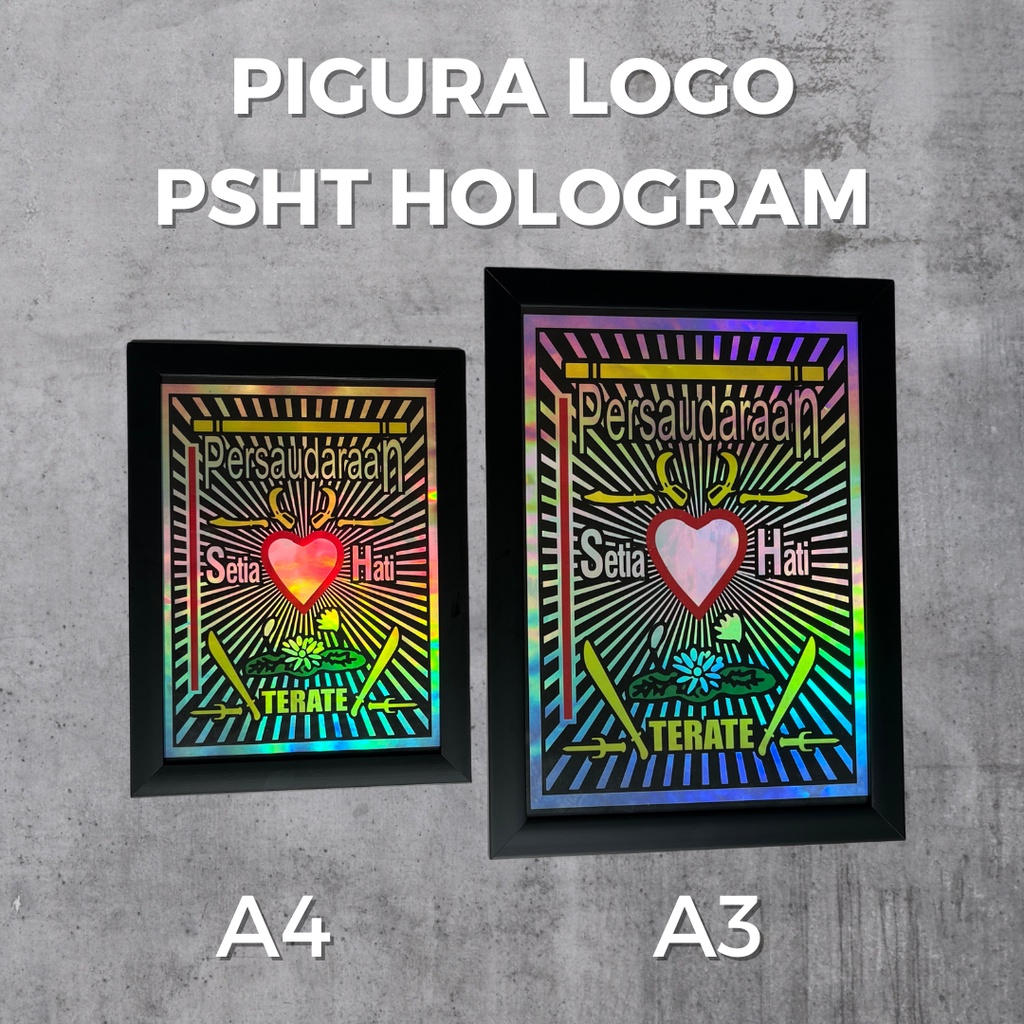 Pigura Logo PSHT Hologram - Ukuran A3 dan A4 | Frame Lambang PSHT Holo Warna Warni Pixel Potrait Gambar Foto Lukisan Hiasan Wallpaper Poster Background Photo Image Silat Martial Arts Dekorasi Tembok Kamar Lotussilat Malang