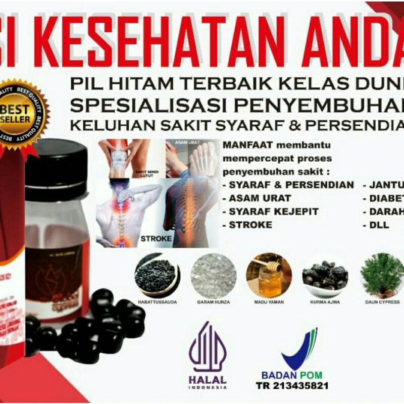 Pil Hitam NU1 Global Cypress Herbal isi 20 Pil @600mg NU 1 Untuk Asam Urat Persendian Kolestrol Syaraf Kejepit Otot dll Dijamin Asli Original 100% jam