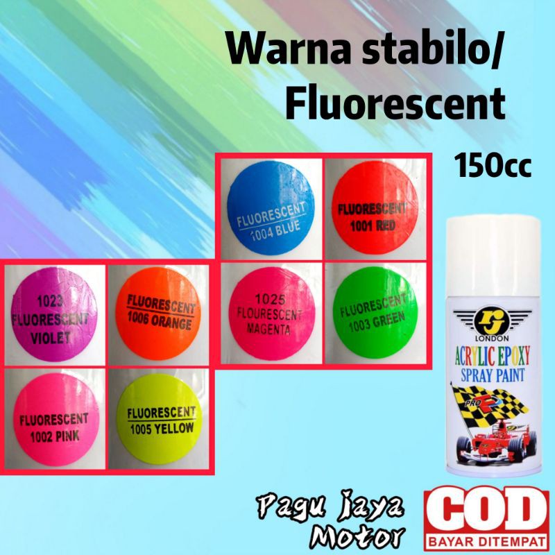 Pilok pilox 150cc semua warna stabilo fluorescent merah red pink hijau green blue biru kuning yellow orange violet ungu magenta cat semprot