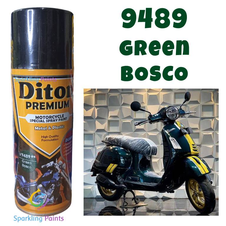 Pilox Diton Premium Vespa Green Bosco 9489 400ml Warna Hijau Tua Gelap Metalik Kilap Pespa 9489**
