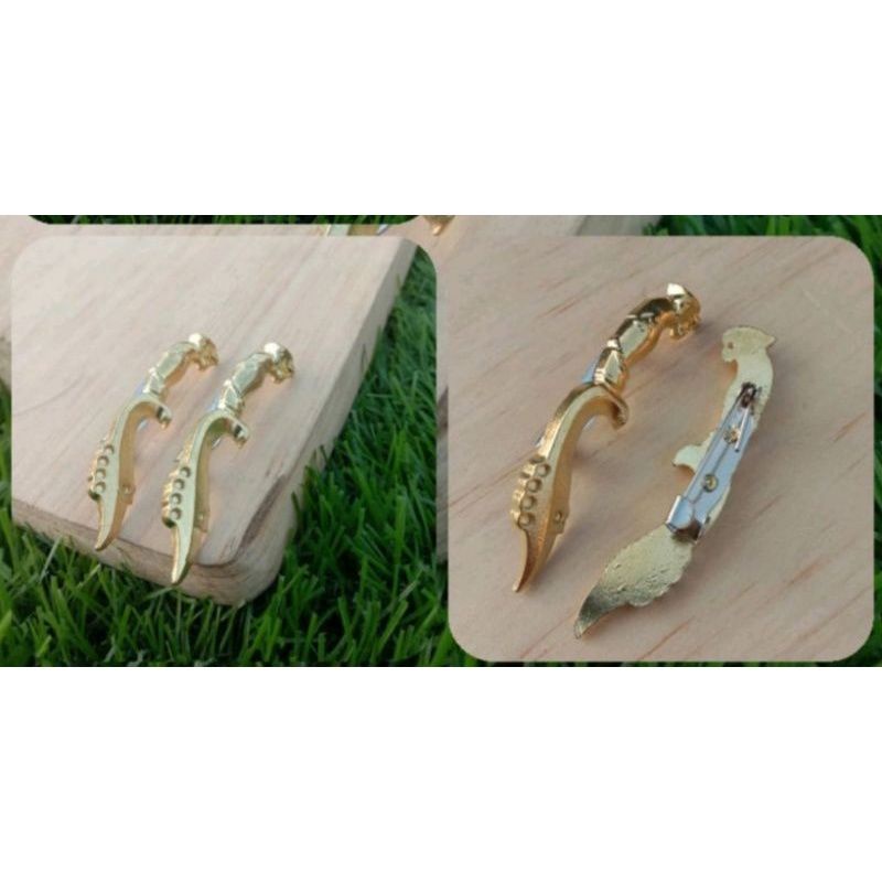 Pin Bros Peci Bentuk Kujang Bahan Kuningan Warna Gold & Silver