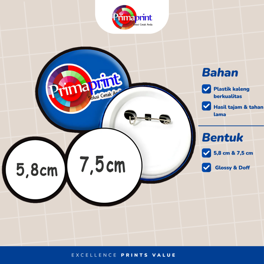 Pin Peniti Custom Button Full Color Printing 58 & 75 mm UV Printing | Cetak Bross Logo Gambar Foto