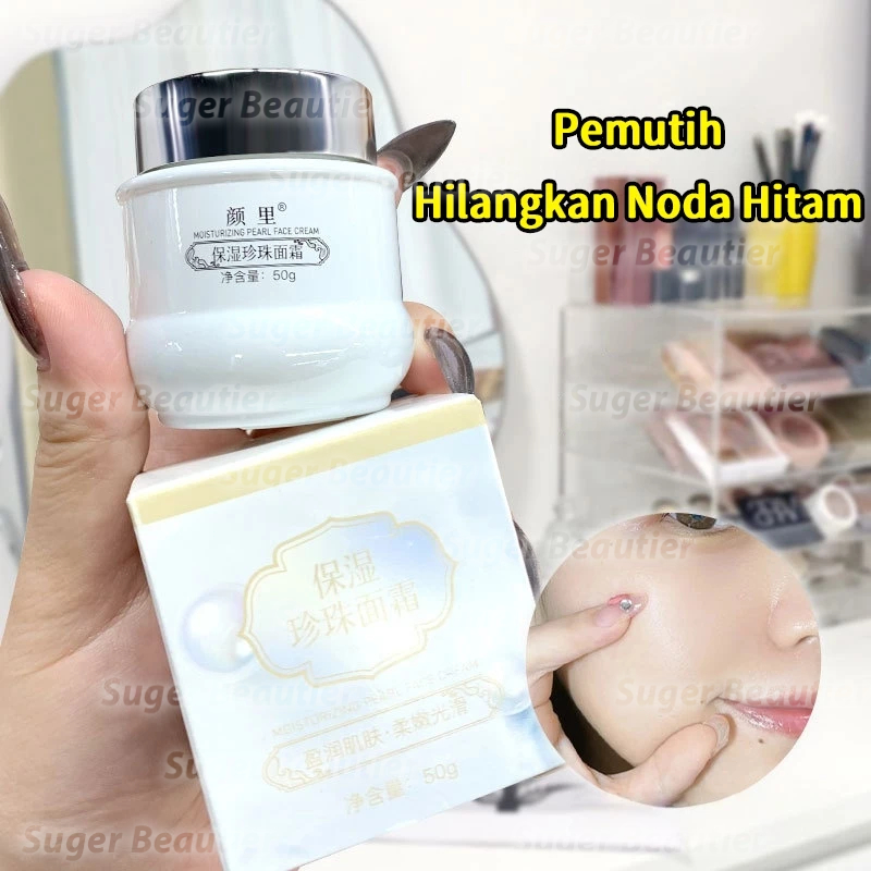 Pearl Cream 50gr Cream Flek Hitam Membandel Cream Siang Malam Glowing Whitening Dark Spot Moisturizer Brightening Cream Pemutih Hilangkan Noda Hitam & Meratakan Warna Kulit Pelembab Wajah Kering dan Kusam Mengecilkan pori-pori Anti Penuaan