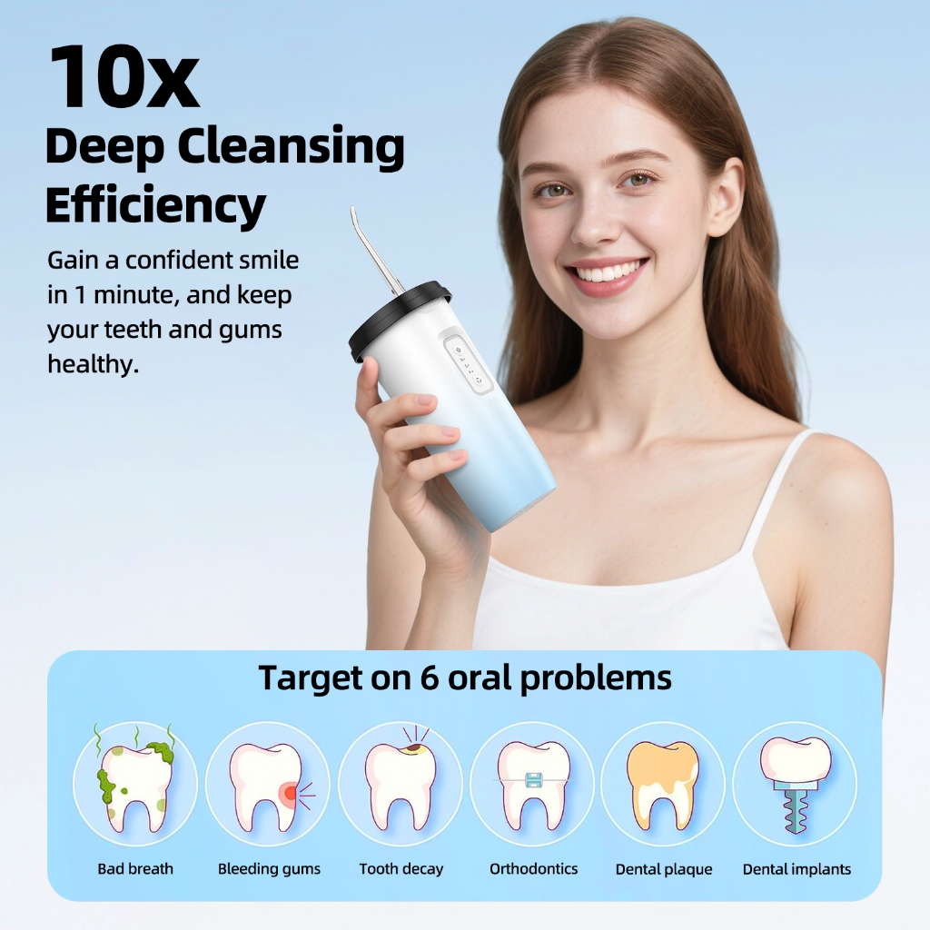 GOKOCO High Frequency Pulse 10x Deep Cleaning 200mL Large Water Tank Electronic Water Flosser