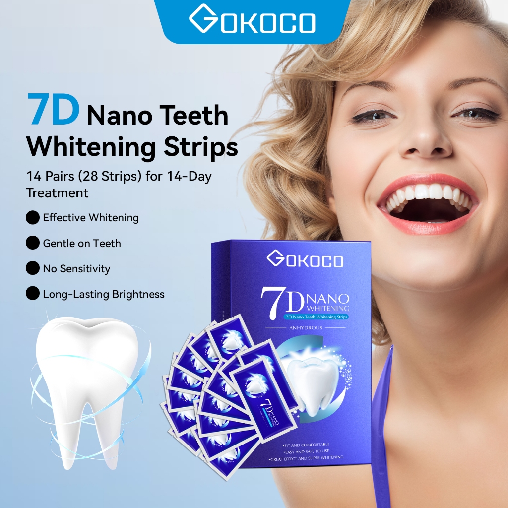 GOKOCO Pemutih Gigi, 7D Nano Whitening Strips, Penghilang Noda Kuning, 28 Strips