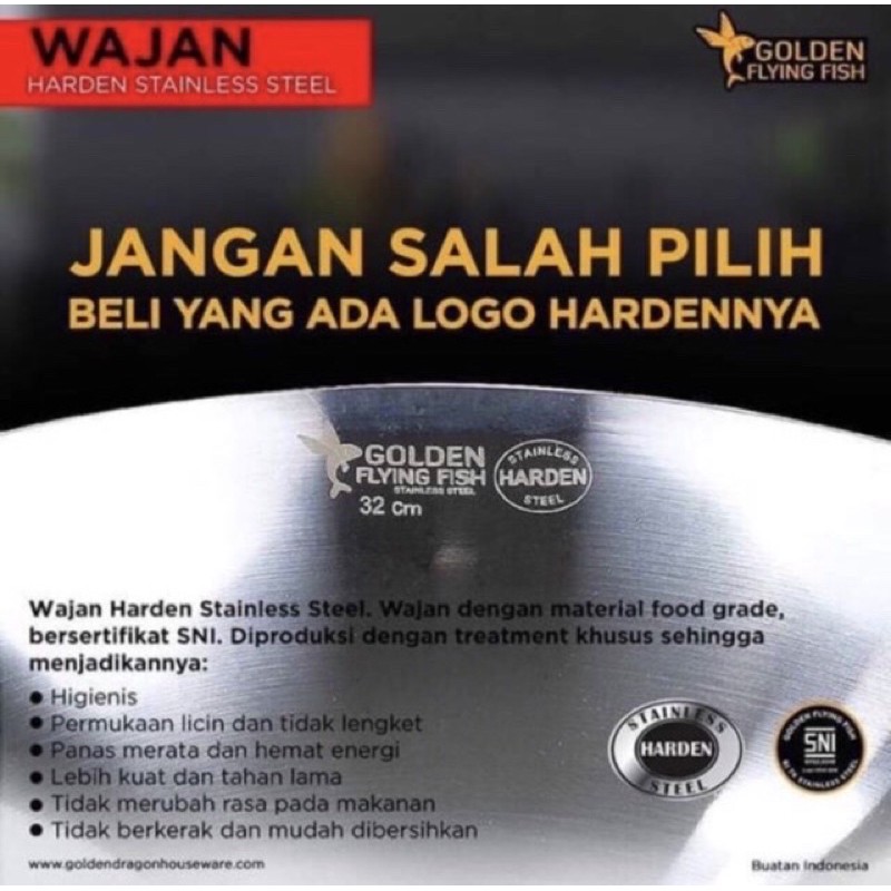 Golden Flying Fish Wajan Anti Lengket & Stainless Harden Steel 30cm — 30cm Gagang Panjang