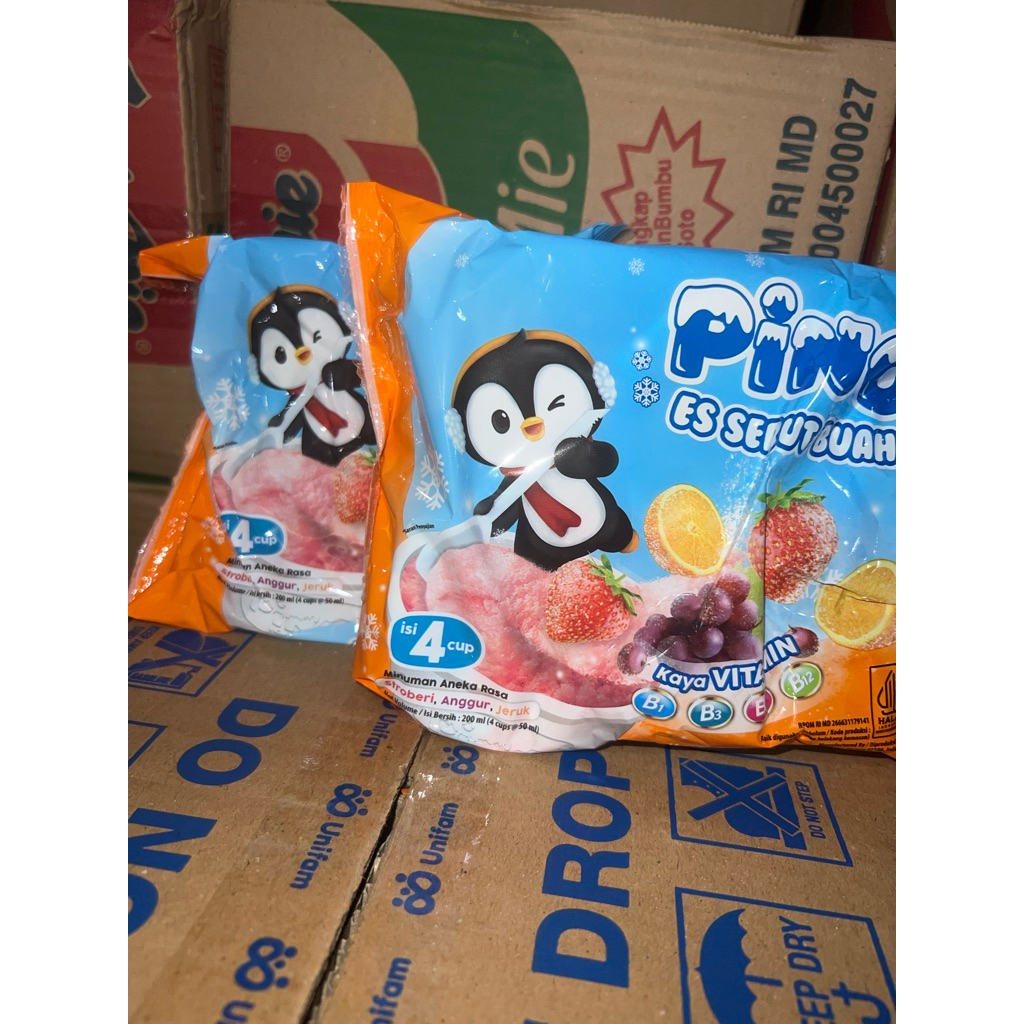 Pino Ice Cup Es Serut Buah Rasa Stroberi,Anggur,Jeruk 1 Pack isI 4 pcs @50ml Cemilan LM Snack Grosir