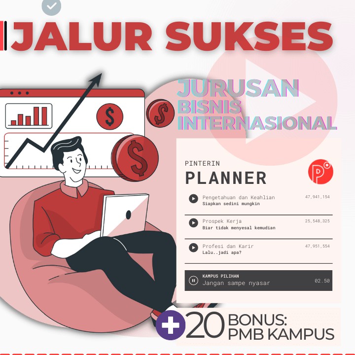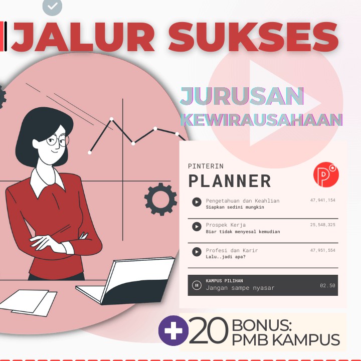 Pinterin Planner JALUR SUKSES Kuliah JURUSAN BISNIS - JALUR TEST SNMPTN-SBMPTN-UTBK-SELEKSI MANDIRI