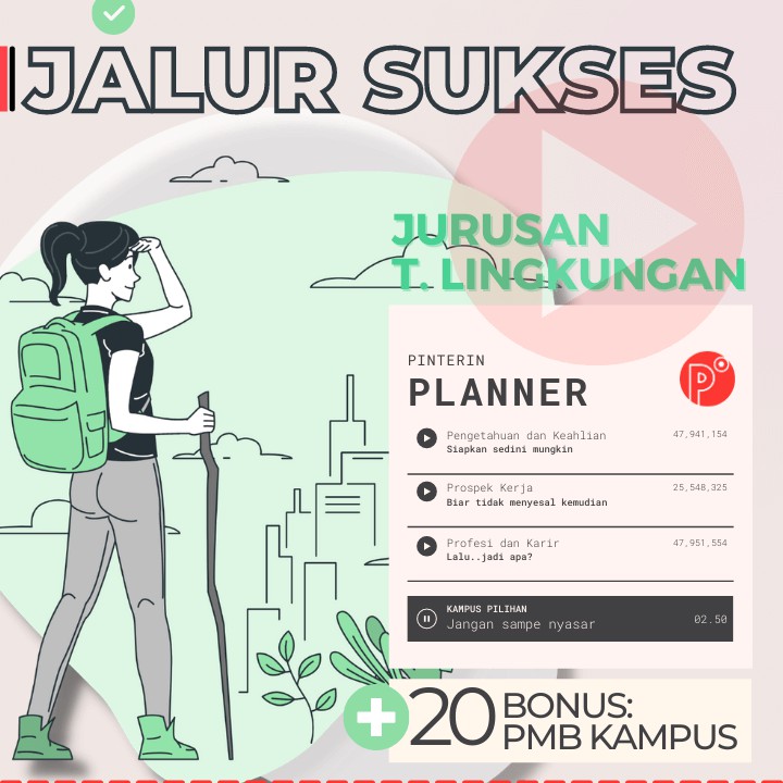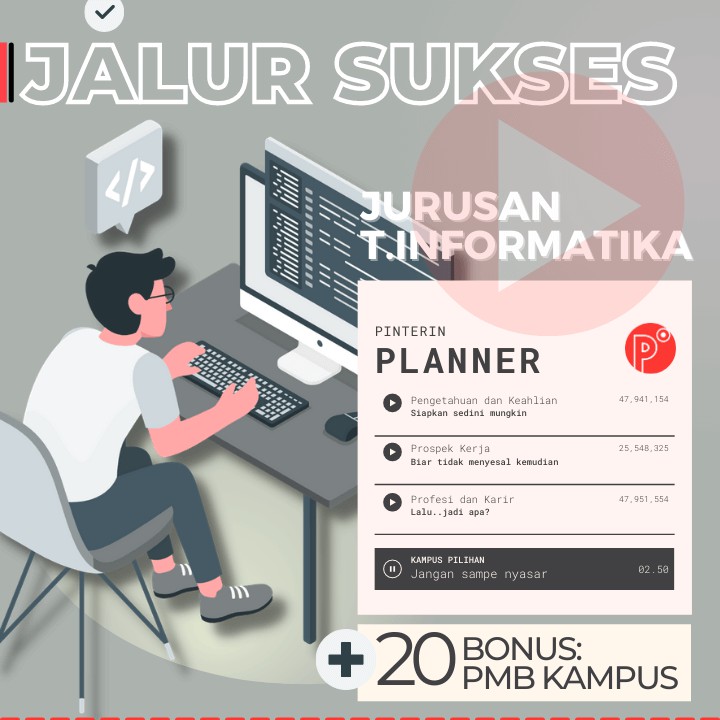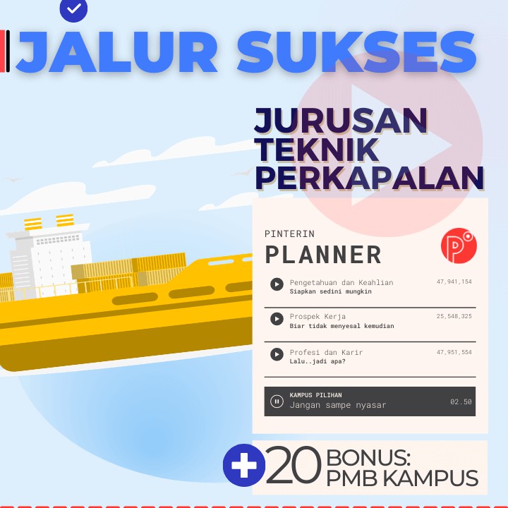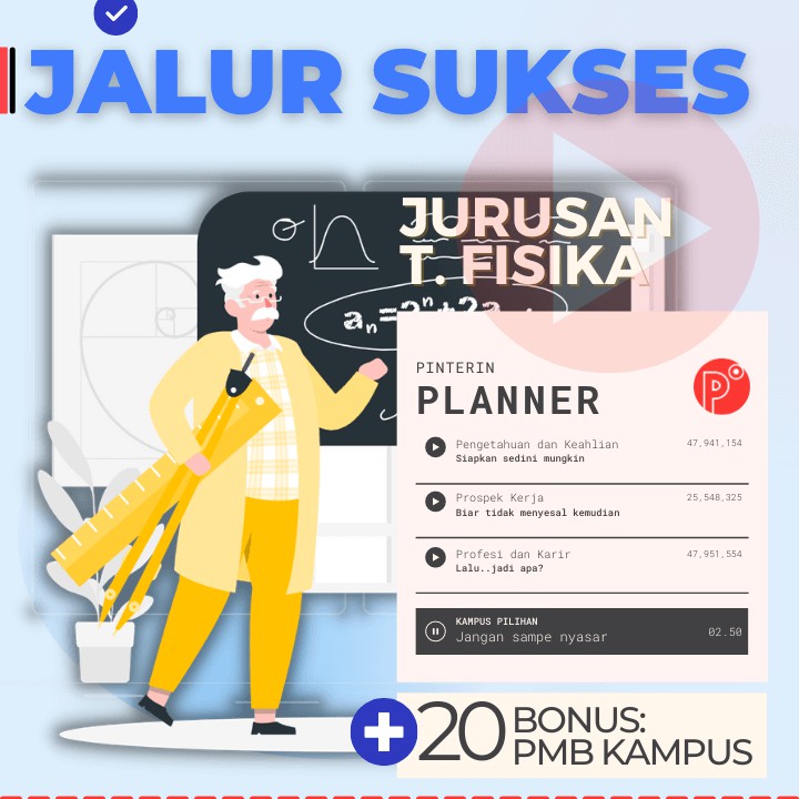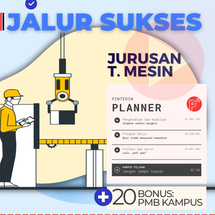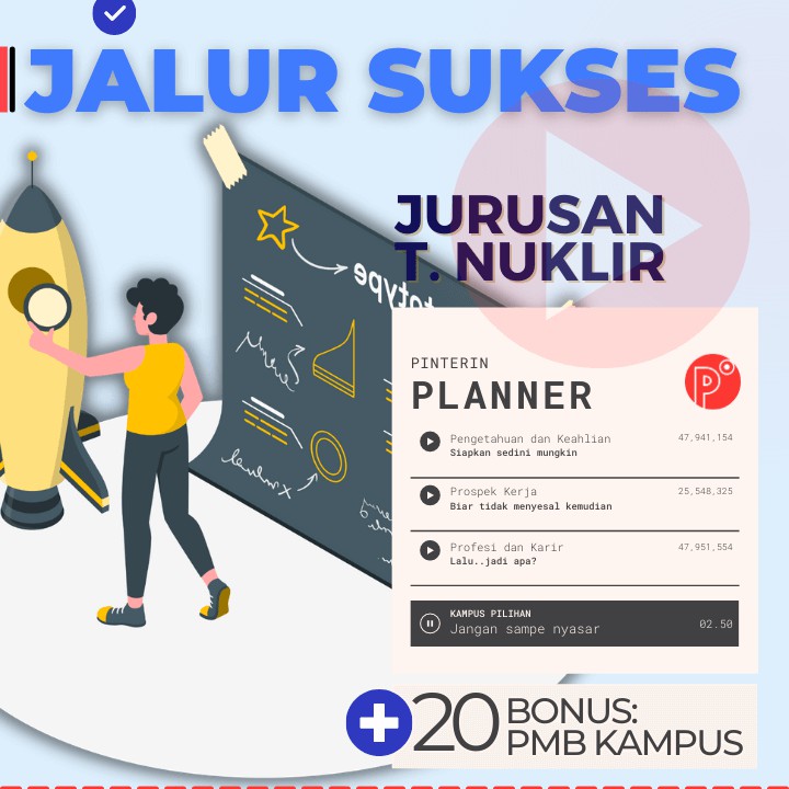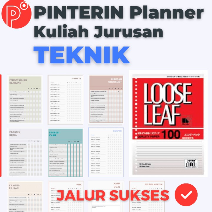Pinterin Planner JALUR SUKSES Kuliah JURUSAN TEKNIK - JALUR TEST SNMPTN-SBMPTN-UTBK-SELEKSI MANDIRI