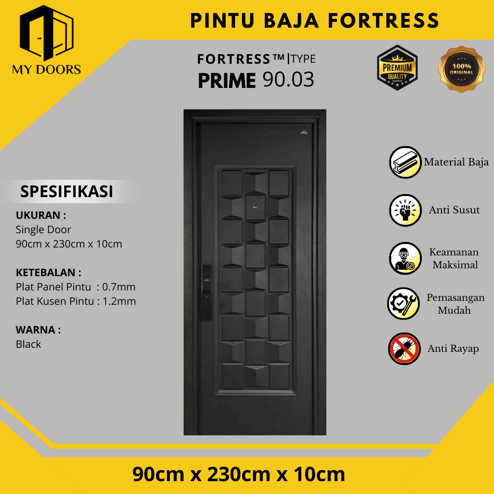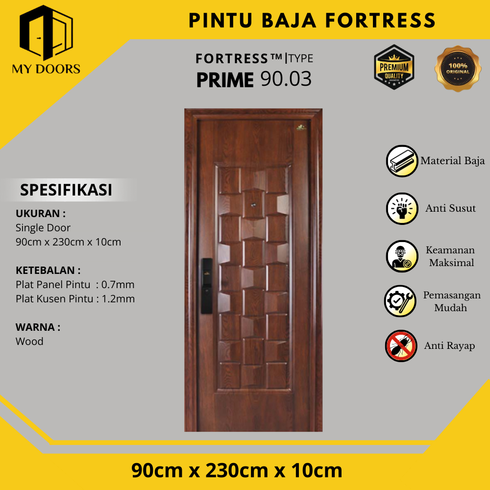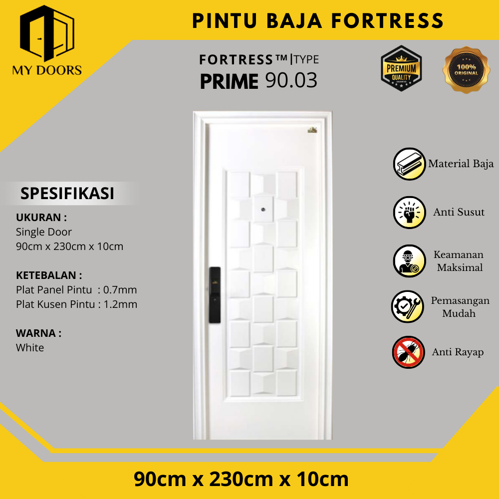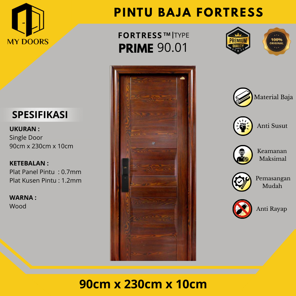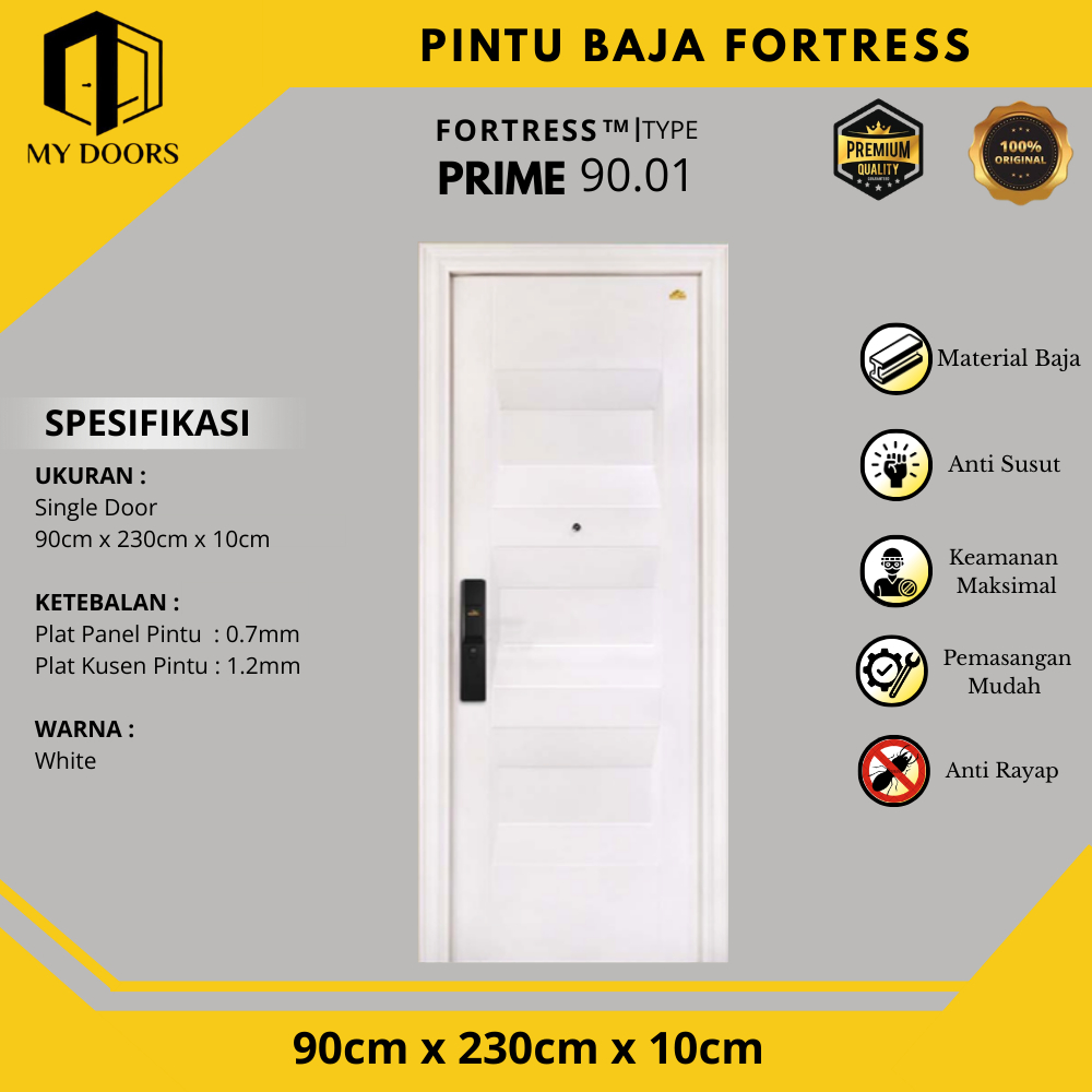Pintu Baja Fortress JBS 90x230cm Type PRIME 90.01-90.03 Putih - Coklat Bahan Tebal Lengkap Dengan Handle Dan Kunci Mewah