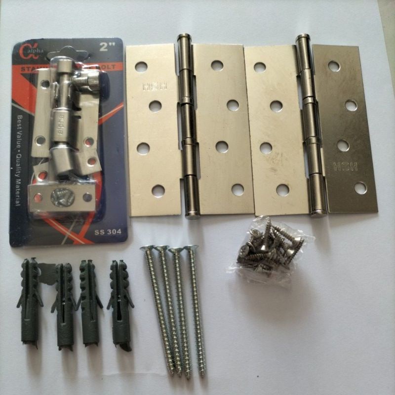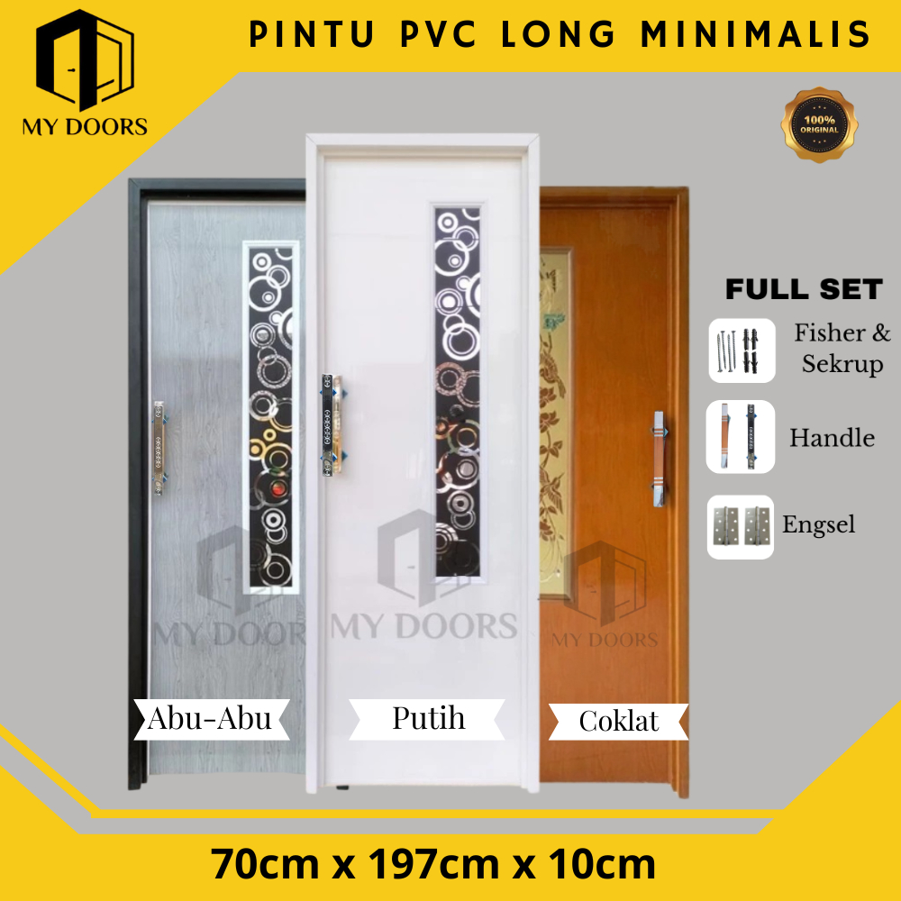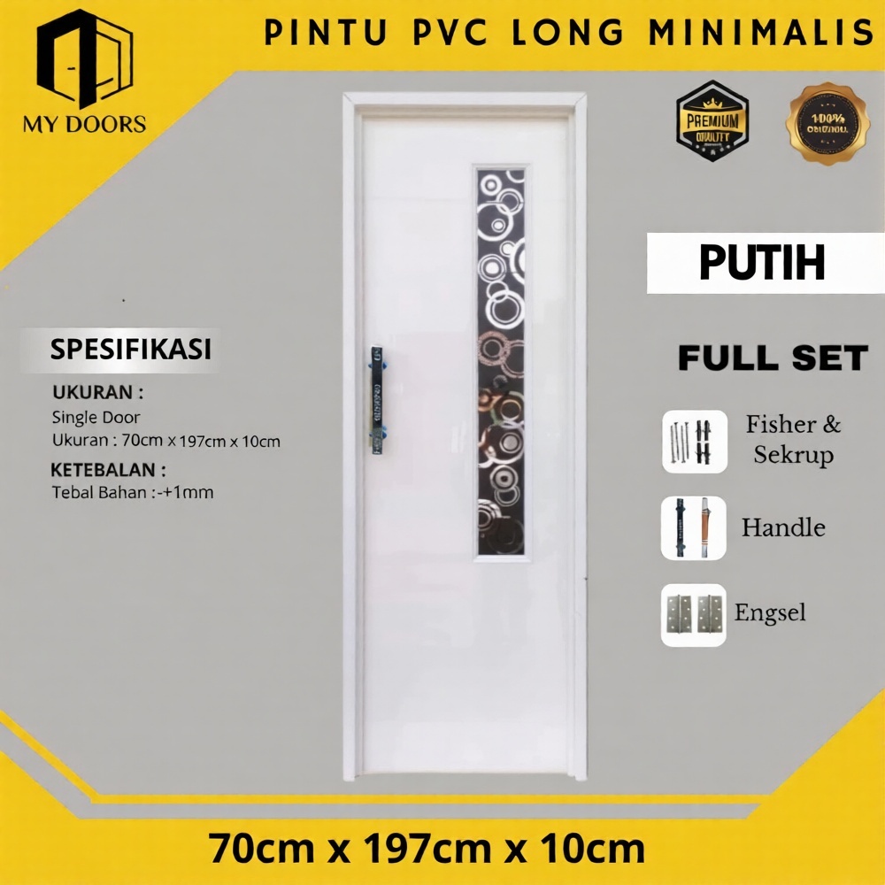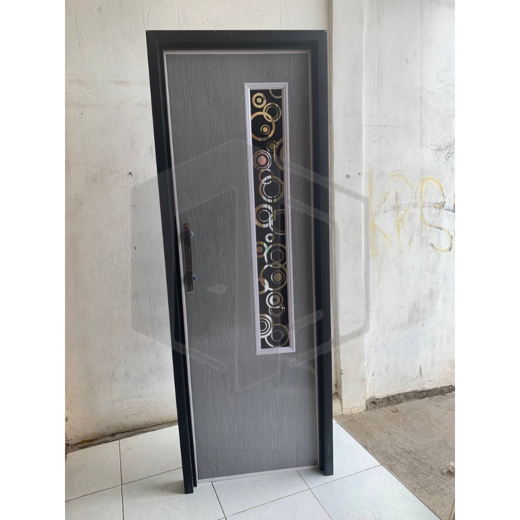 Pintu Kamar Mandi PVC Putih Kaca Motif & Cermin Dalam Bahan Tebal + Dengan Handle Stainless Mewah & Eklusive