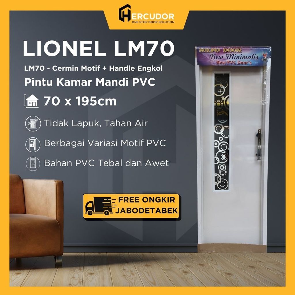 LIONEL LM - Pintu Kamar Mandi PVC Tebal LM ENGKOL 70x195 - Cermin Motif - Minimalis Modern Anti Air Anti Rayap Handle Mewah