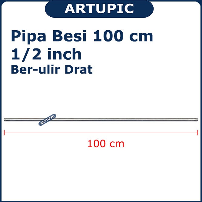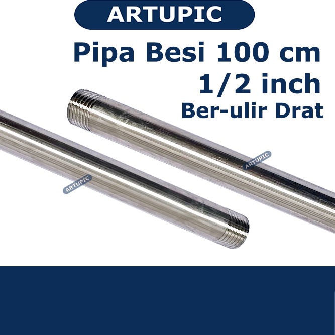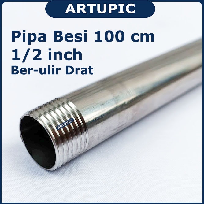 Pipa Besi 100 cm 1/2" Ber-ulir Drat Male Stainless Bulat Polos Artupic