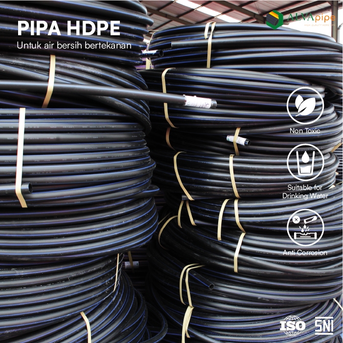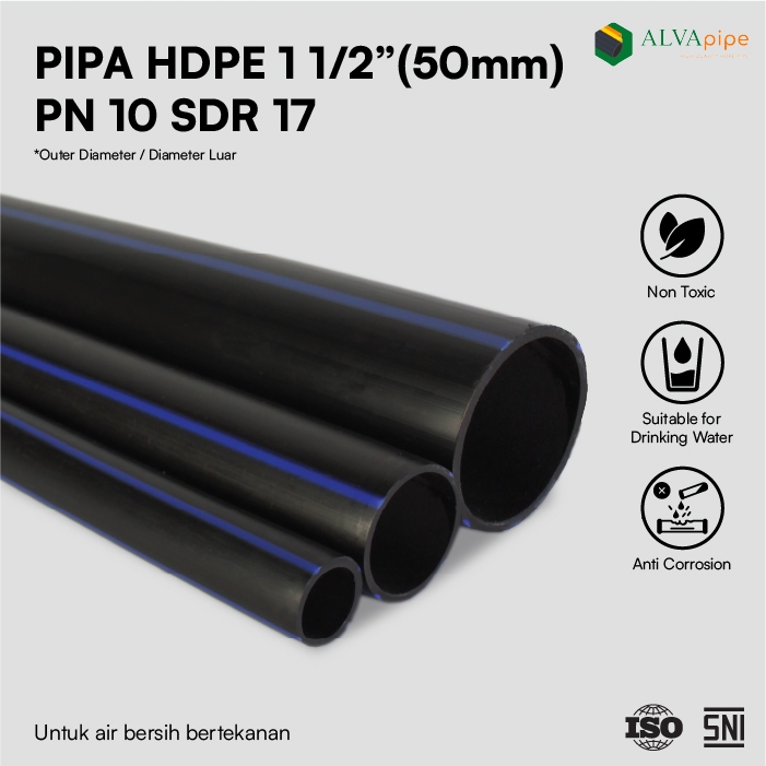 ALVApipe Pipa Air HDPE 1 1/2 Inch (50 mm) PN 10 Pipa Air Bersih Standar SNI Kualitas Tinggi - Ecer Per Meter