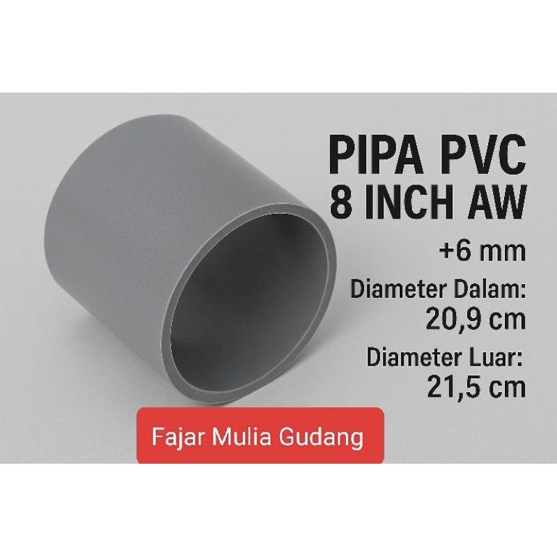 Pipa PVC 8 Inch AW Abu-Abu Panjang 6 cm - Tebal +6 mm - Untuk DIY, Aksesoris, Hiasan