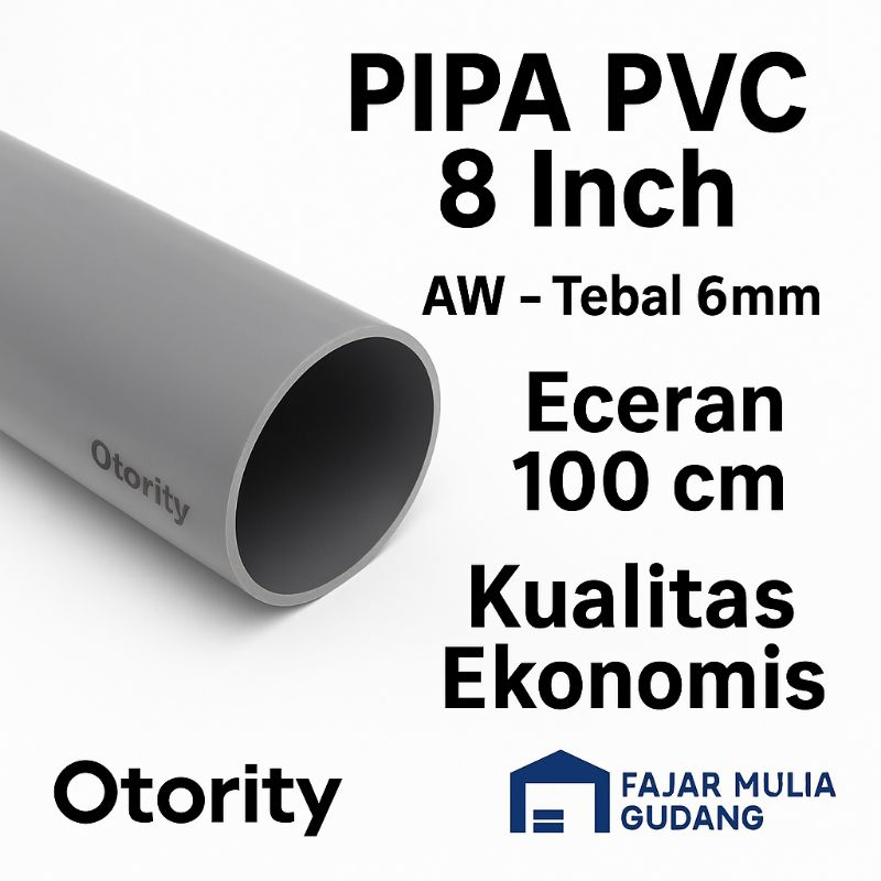 Pipa PVC 8 Inch AW Abu-abu | Eceran 100cm | Tebal +6mm | Kualitas Ekonomis