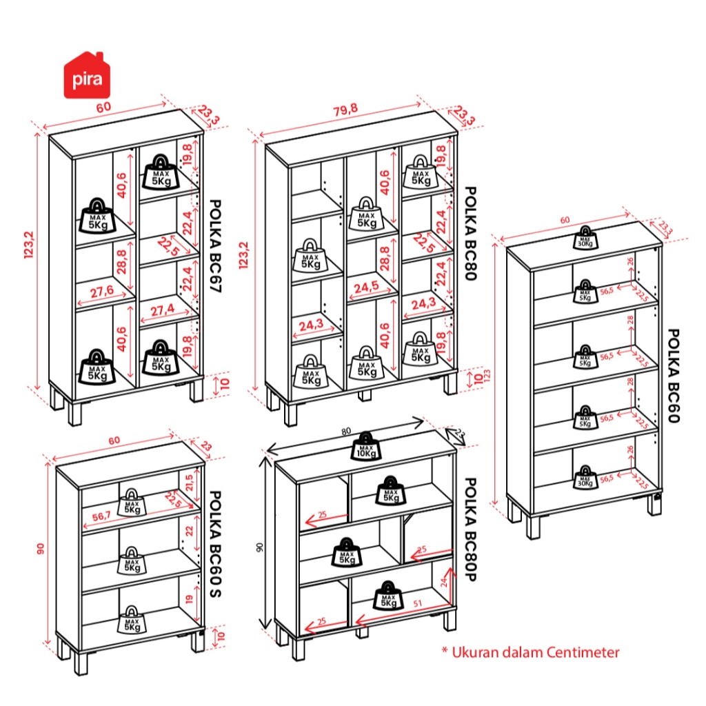 Pira OX - Polka BC60 Rak Buku Minimalis Serbaguna 4 Tingkat