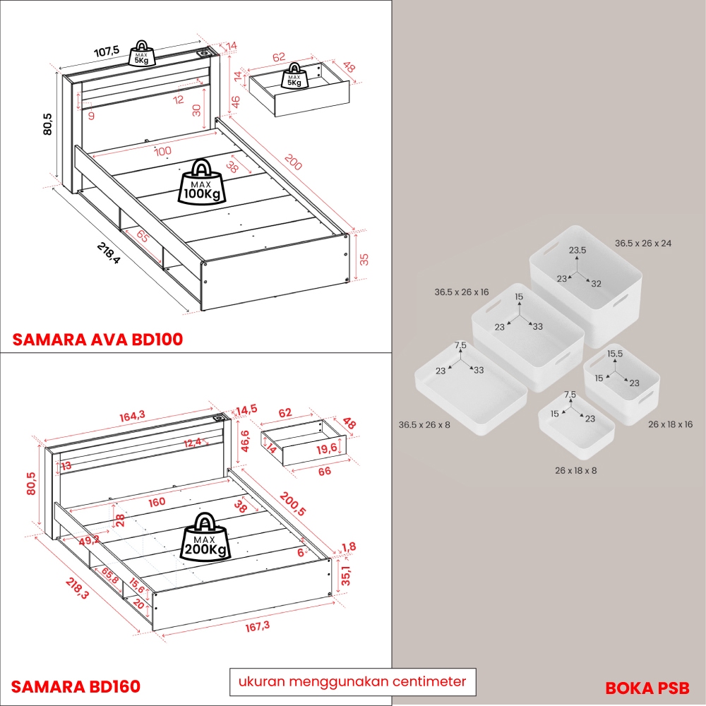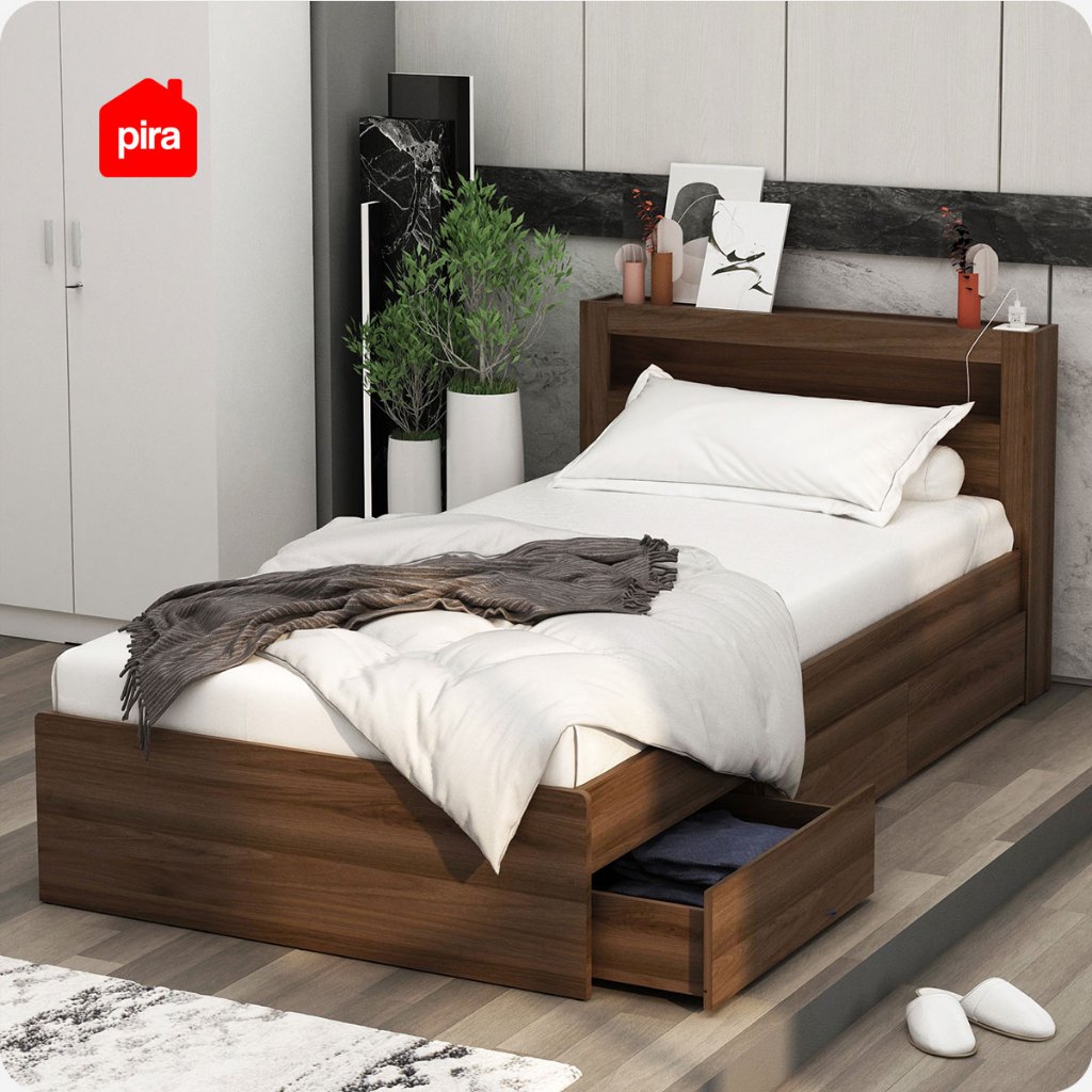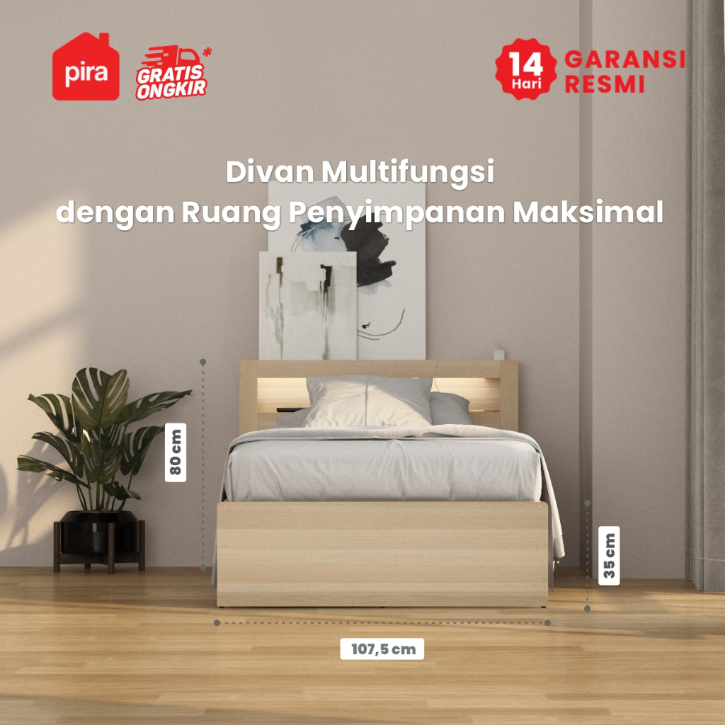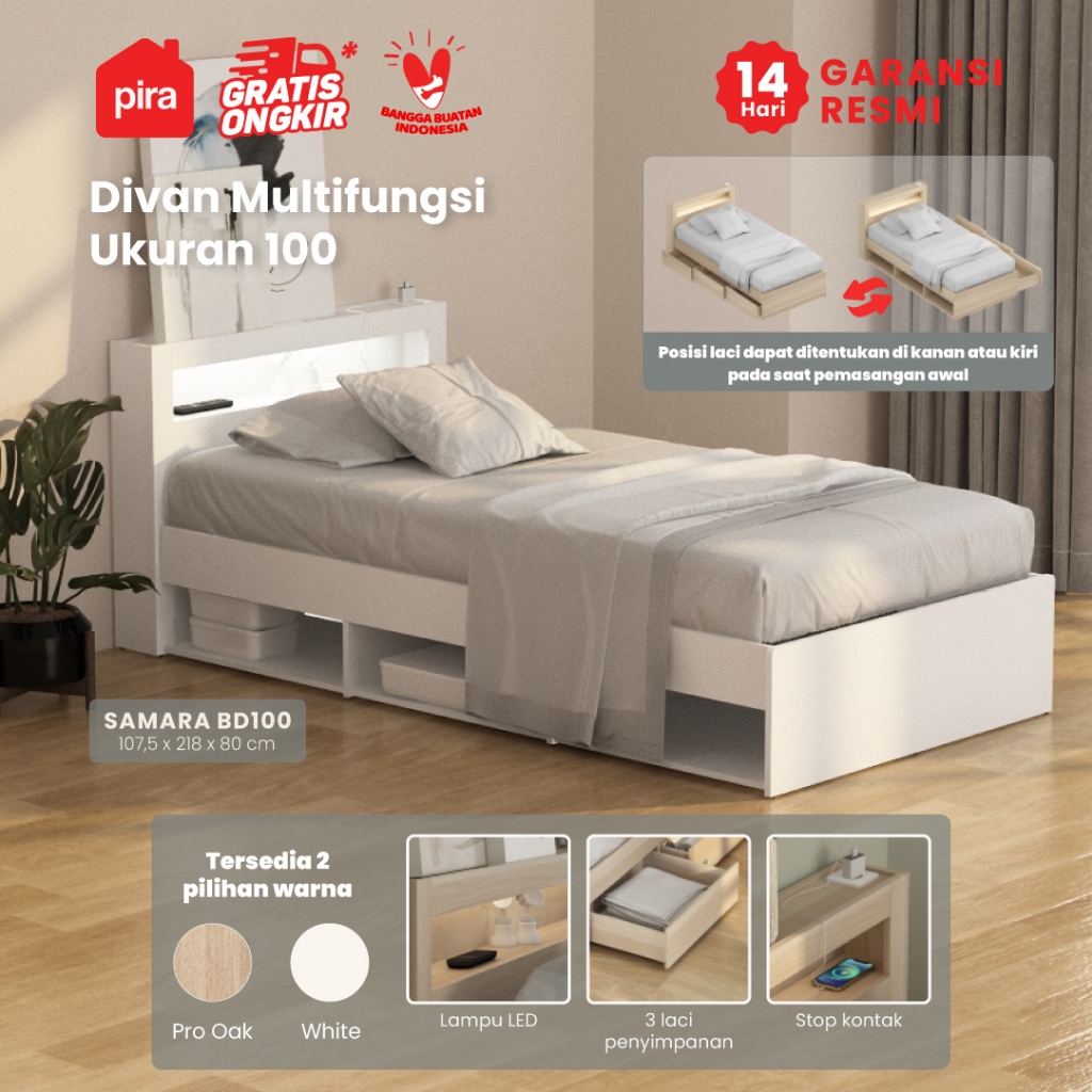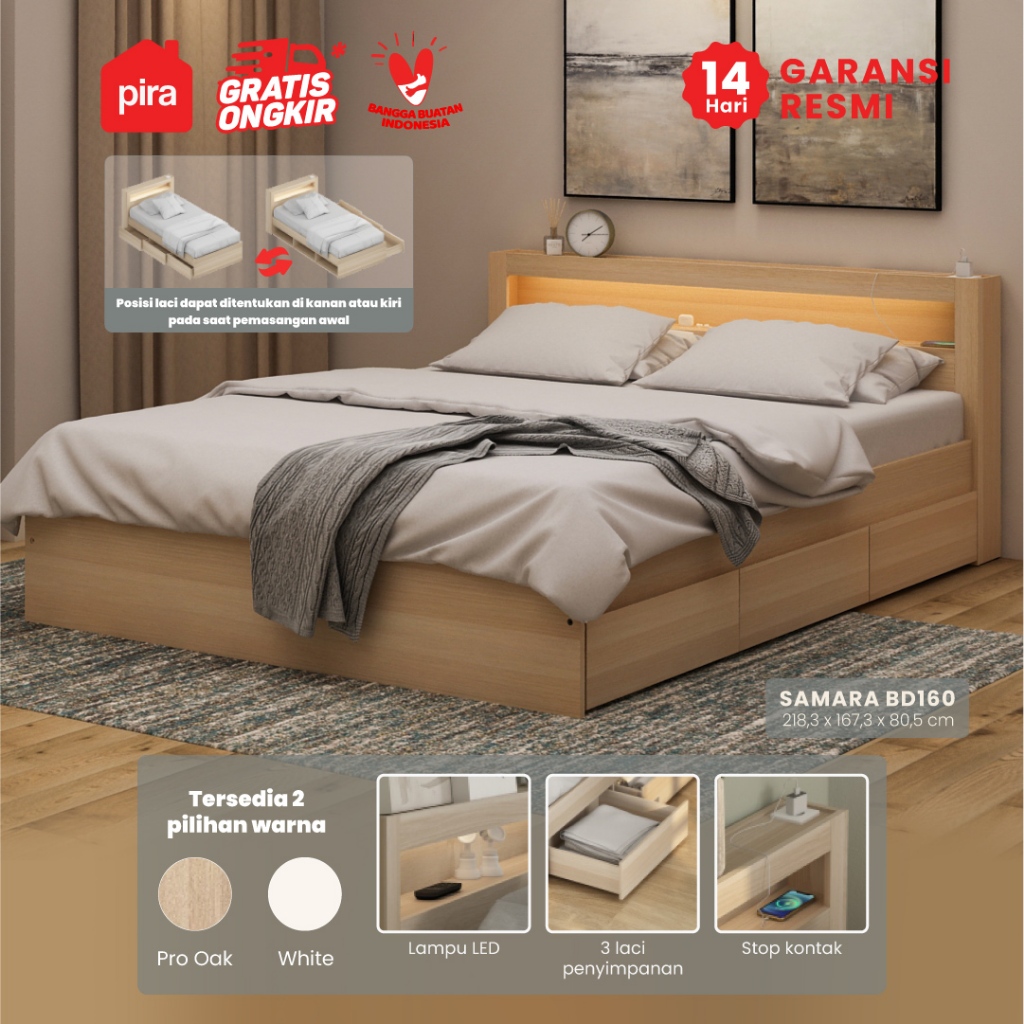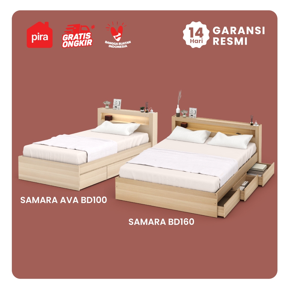Pira - SAMARA AVA BD100 Dipan / Ranjang / Tempat Tidur dengan Laci Penyimpanan dan LED