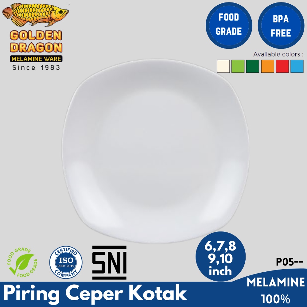 Piring Ceper Kotak Melamin Golden Dragon / Piring Makan Ceper Kotak 6 7 8 9 10 inch