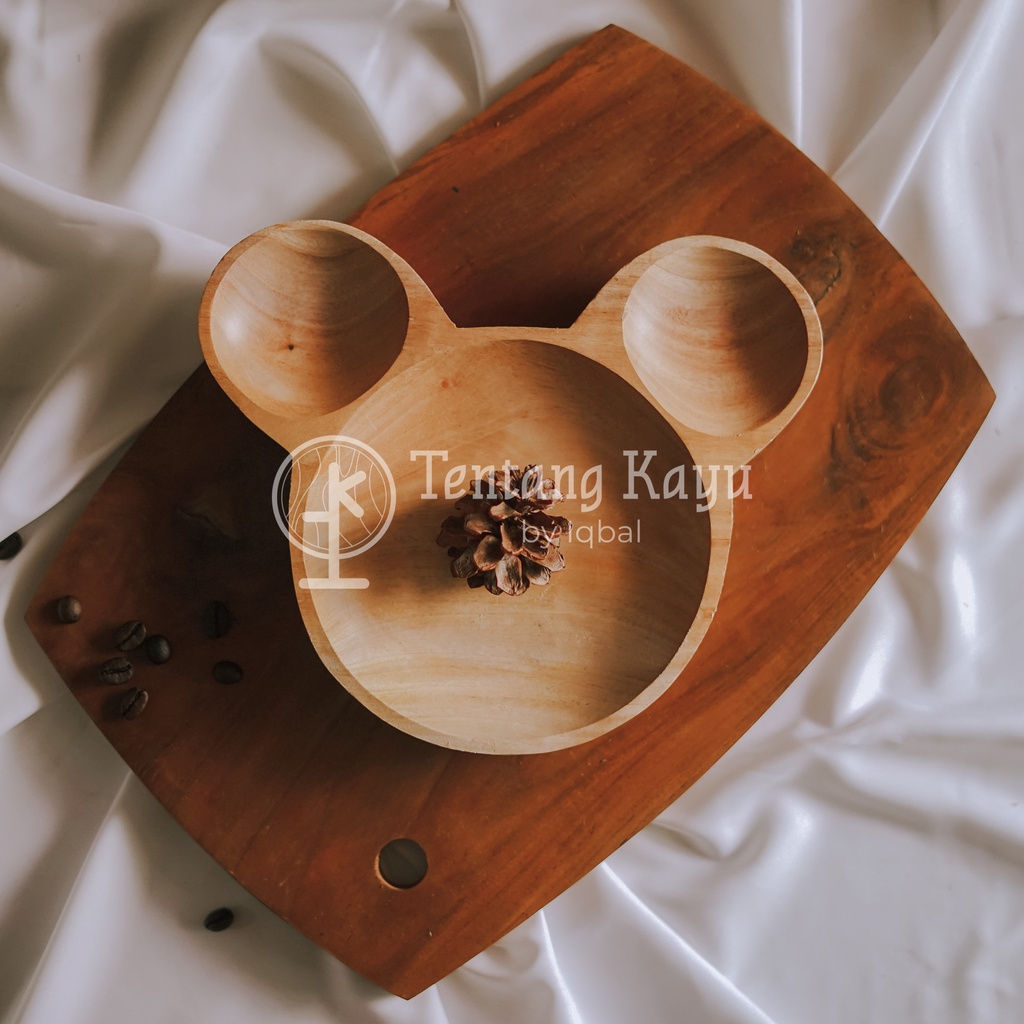 Piring Kayu / Piring Kayu Mickey Mouse / Piring Kayu Panda Unik