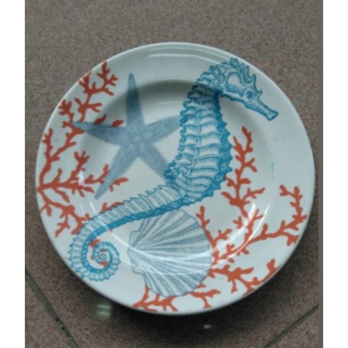 Piring Keramik Snack Cemilan SANGO Kuda Laut Animasi Anak Lucu Merah Red 15 cm