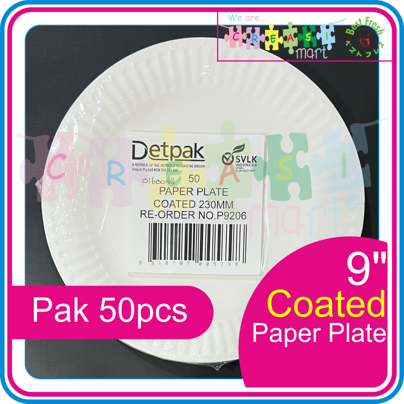 Piring Kertas Premium Coated Pak Isi 50pcs Paper Plate Tersedia 3 Ukuran Steril Food Grade Original