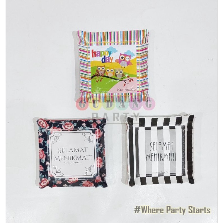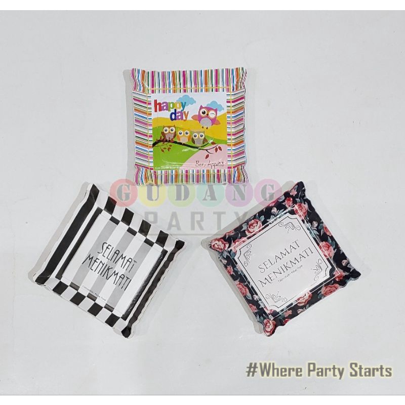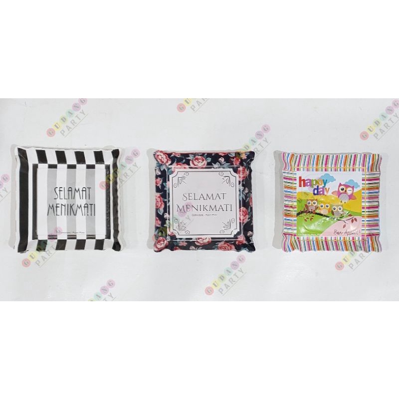 Piring Kotak Motif/Piring Pesta/Piring Kertas/Piring Ultah/Paper Plate/Piring Kue