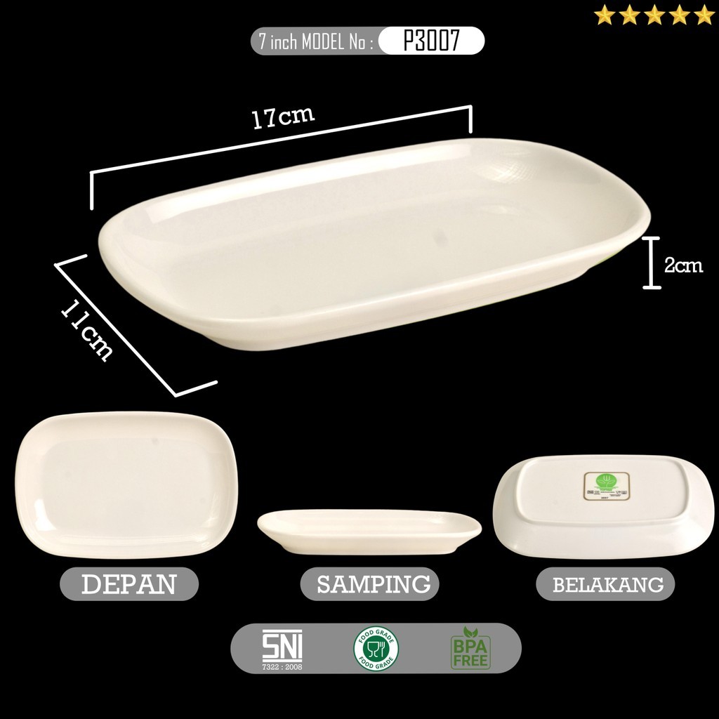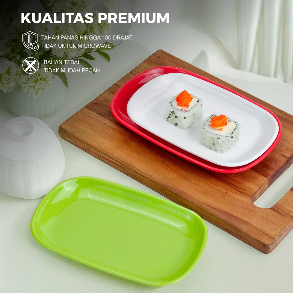 Piring Lauk Melamin Persegi Panjang + FREE CETAK LOGO Lusin 6/12 Pcs | Piring Saji Cafe & Catering