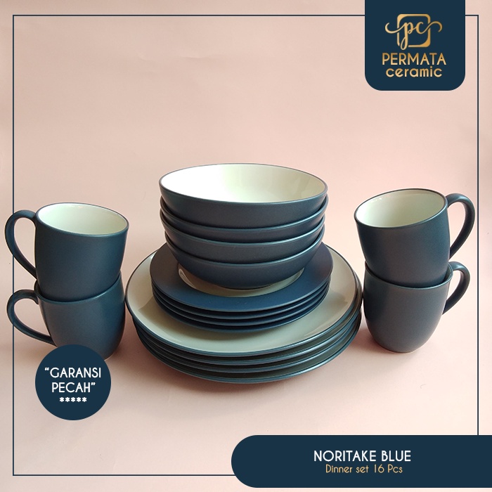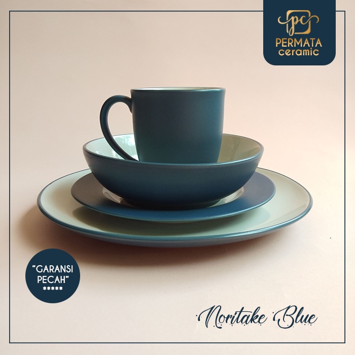 Piring Makan Dinner set Keramik motif Noritake Blue 16Pcs