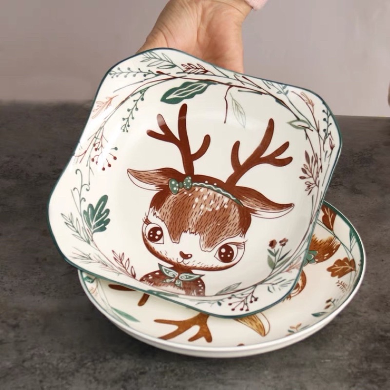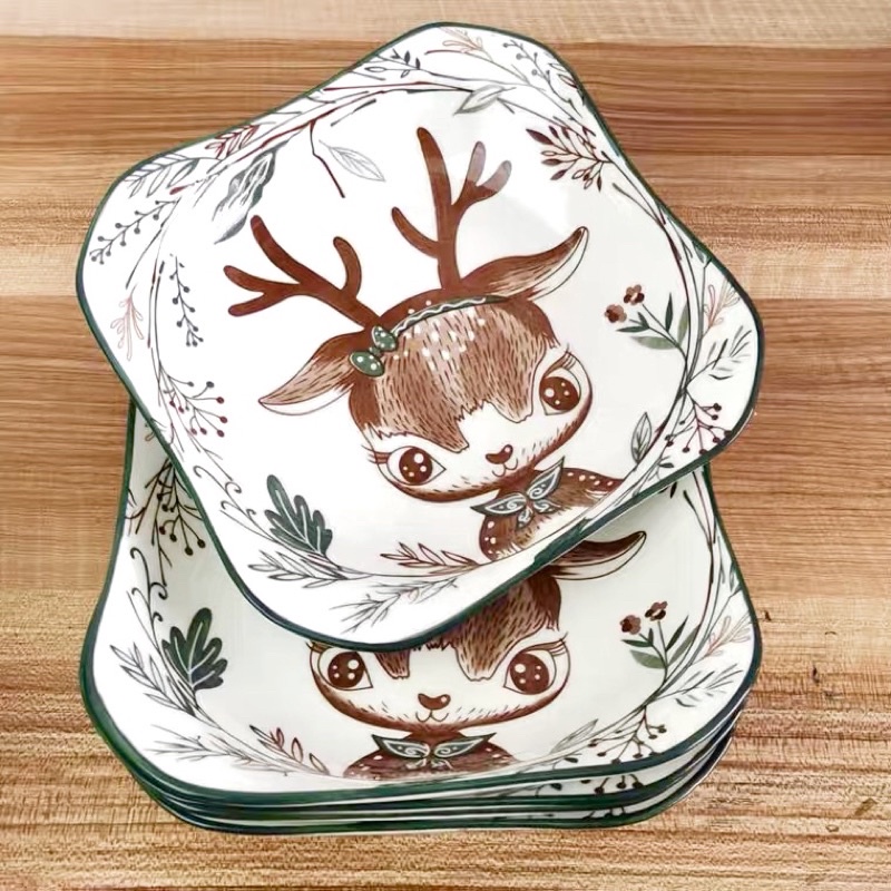 Piring Makan Keramik 8 inci persegi Motif Rusa Persegi Piring Set Keramik 6 inci 8 inci 12 inci Hampers Piring Kado Piring