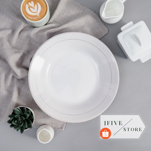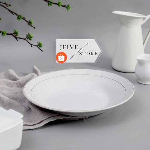 Piring Makan List Emas | Piring Makan Keramik | Piring Nasi 23 cm