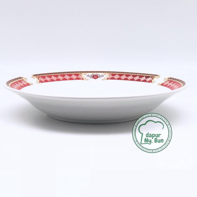 Piring Makan Motif Kotak Merah / Ukuran 23cm / Piring Besar
