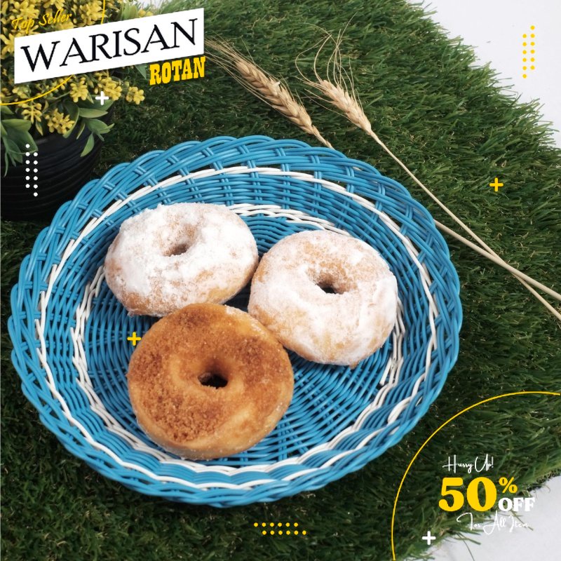 Piring Rotan Sintetis Piring Lidi Piring Anyaman Piring Bambu Piring Tradisional Piring Diameter 24 CM Warna Warni