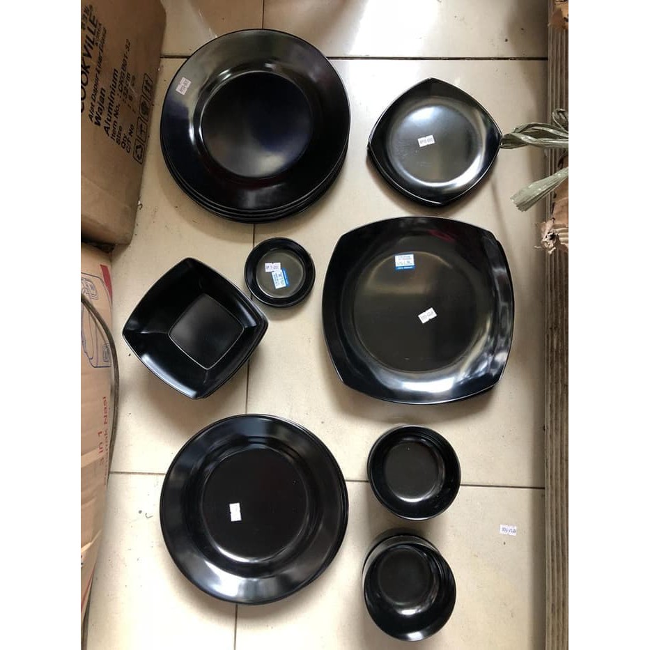 Piring dan Mangkok Melamin Set Hitam 30 Pcs