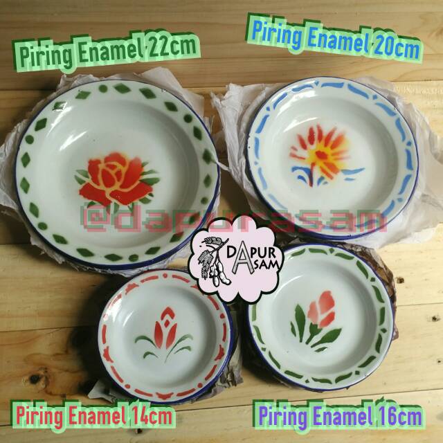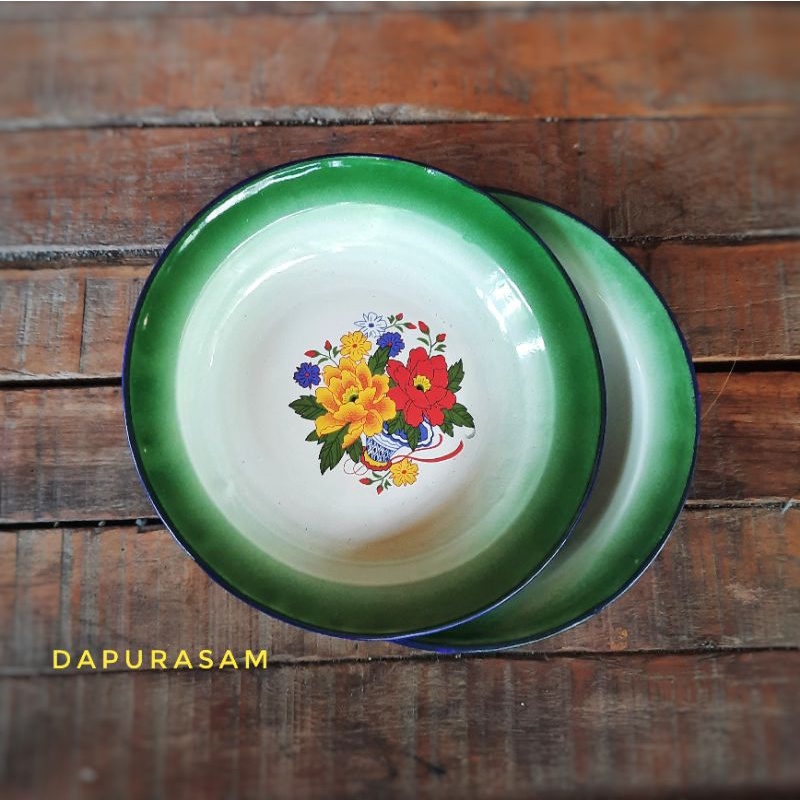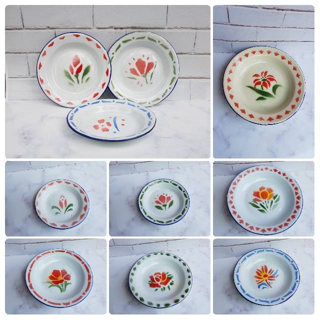 Piring enamel 20cm blek seng kembang jadul blirik lurik