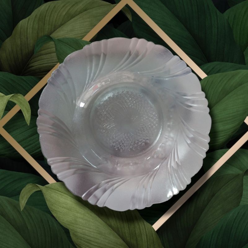 Piring kaca bening Cantik motif salur acak dimensi lingkar 23cm